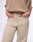 Elegant grey trousers with a subtle check pattern perfectly complement the everyday wardrobe. The loose fit and high waistline accentuate the silhouette, providing comfort and sophistication. The light and breathable fabric texture makes them suitable for any season. We recommend combining them with blouses, shirts, and jackets, adding a professional and stylish accent to the look.