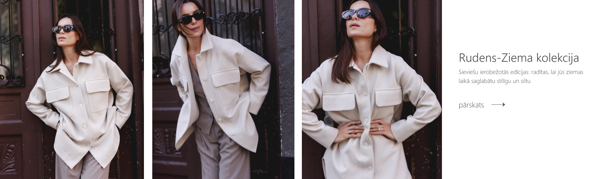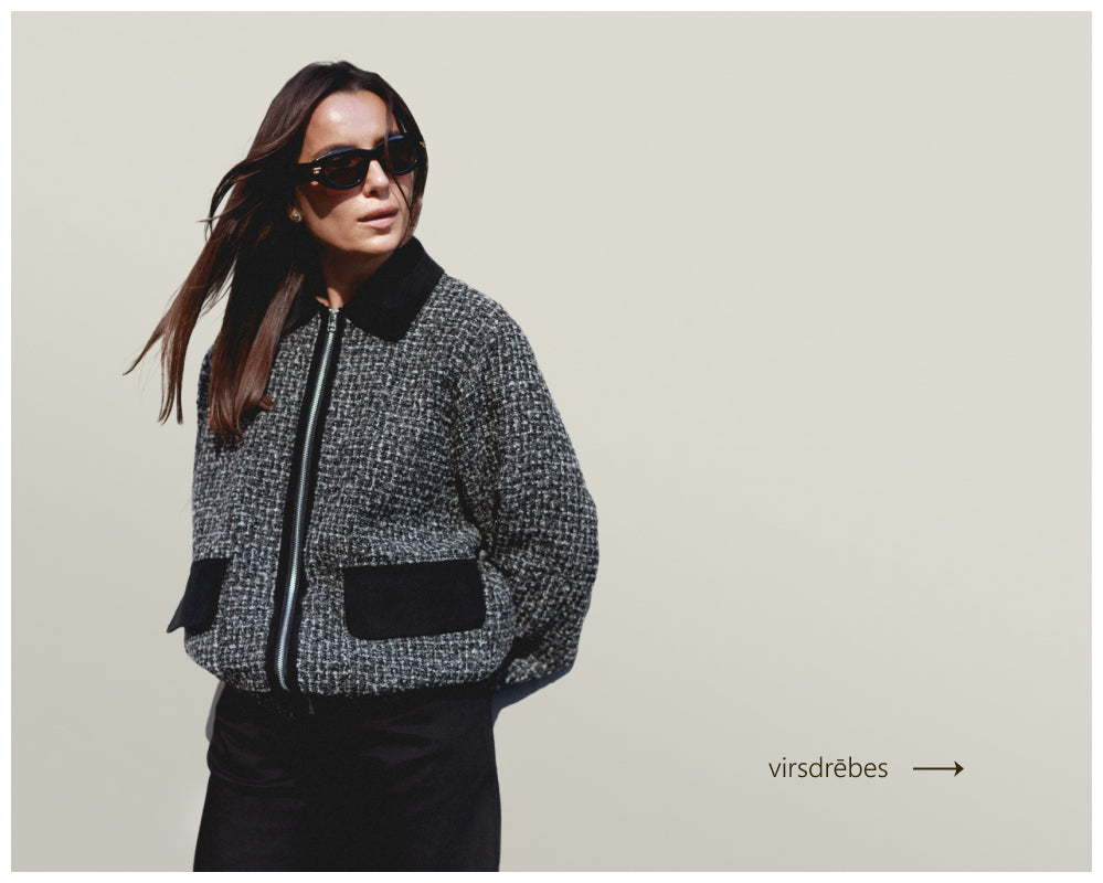 - Stilīgu virsdrēbju klāstu: mēteļi, jakas, žaketes, kardigāni un vestes.