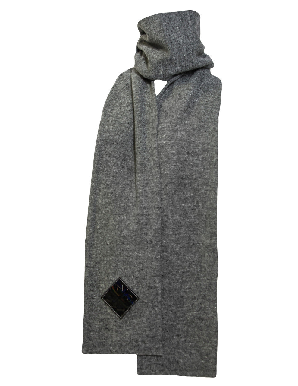 Gara, melna dubulta adīta vilnas maisījuma šalle, kas dekorēta ar Nolo logotipa uzšūtu etiķeti. Izmērs 220x14cm