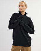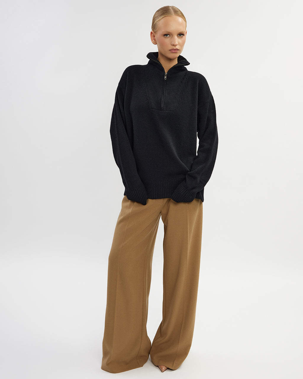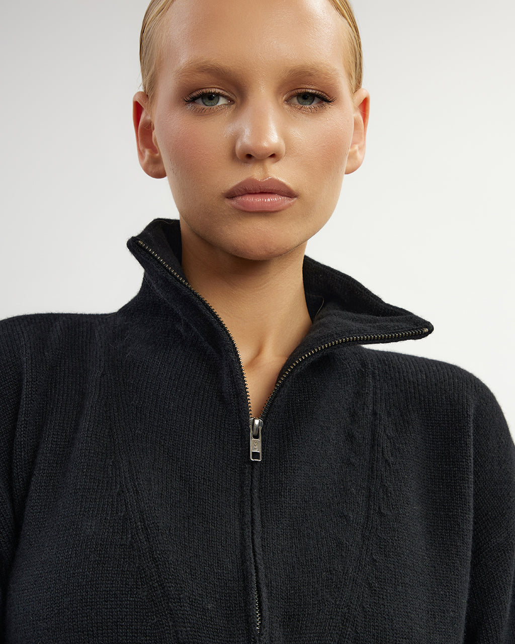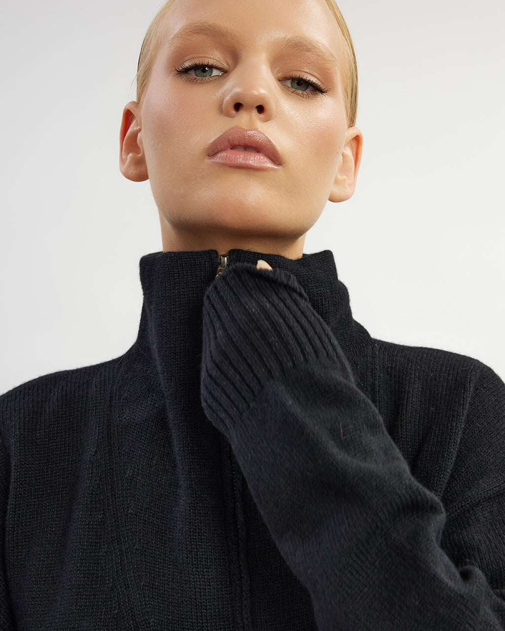 Mūsu bestsellers - mīksts un viegls kašmira džemperis ar augsto apkakli un rāvējslēdzēju. Pateicoties nedaudz nolaistajai plecu līnijai un garumu līdz gurniem džemperis viegli sader gan ar mūsu kolekcijas biksēm, gan ar jebkuru citu apakšdaļu. Izgatavots no premium klases kašmira – tik viegla materiāla, ka tas gandrīz nav jūtams uz ādas, pat neskatoties uz blīvo tekstūru. Ideāls džemperis omulīgiem un stilīgiem tēliem vēsās dienās.
