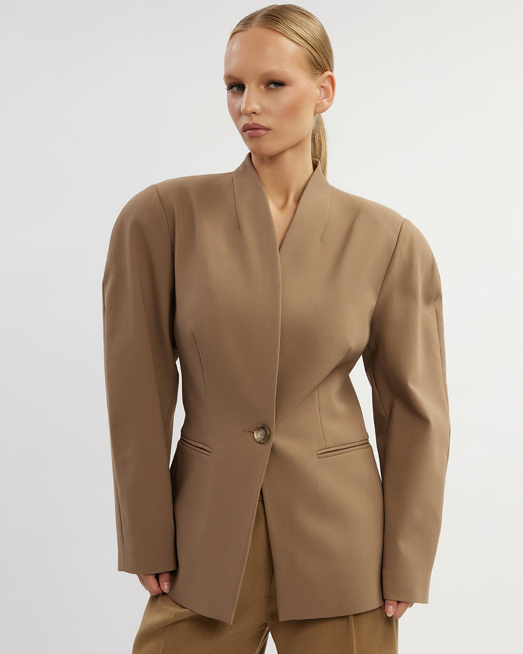 Izcel savu spēcīgo individualitāti un radi elegantu, pilnīgu izskatu ar pieskaņotām biksēm vai svārkiem no NOLO kolekcijas.