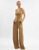 Veste ir izgatavota no viskozes un vilnas maisījuma. Tā ir ideāli piemērota, lai radītu gan atturīgu un lietišķu, gan stilīgu un romantisku koptēlu. Pateicoties optimālajam garumam, tā lieliski izskatās kopā ar klasiskām, taisna piegriezuma biksēm, džinsiem vai jebkura garuma svārkiem. Koptēlu loģiski papildinās klasiskas kurpes, mokasīni, brīvā laika apavi. Šī piegulošā veste ir klasiska bāze modernu koptēlu veidošanai.