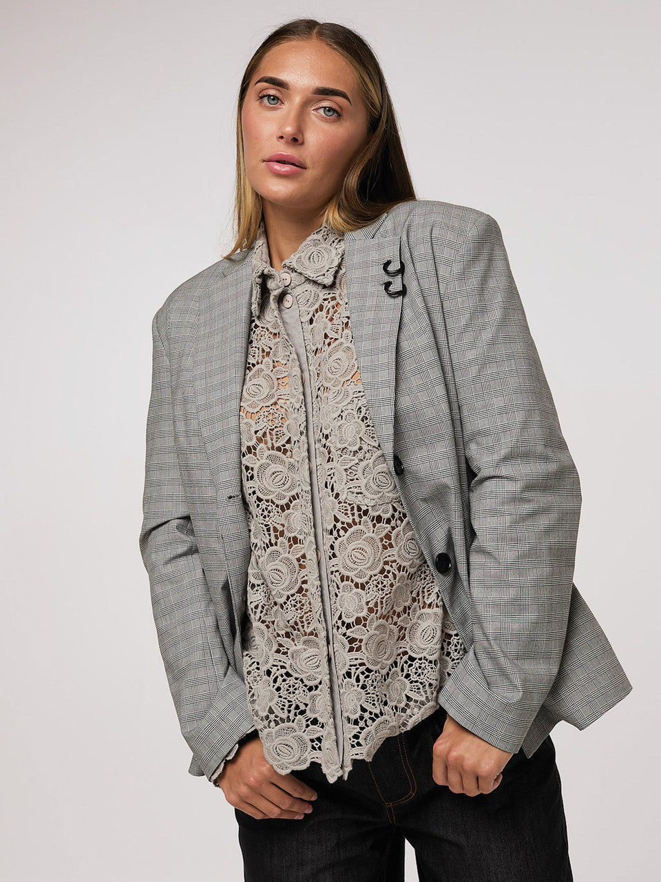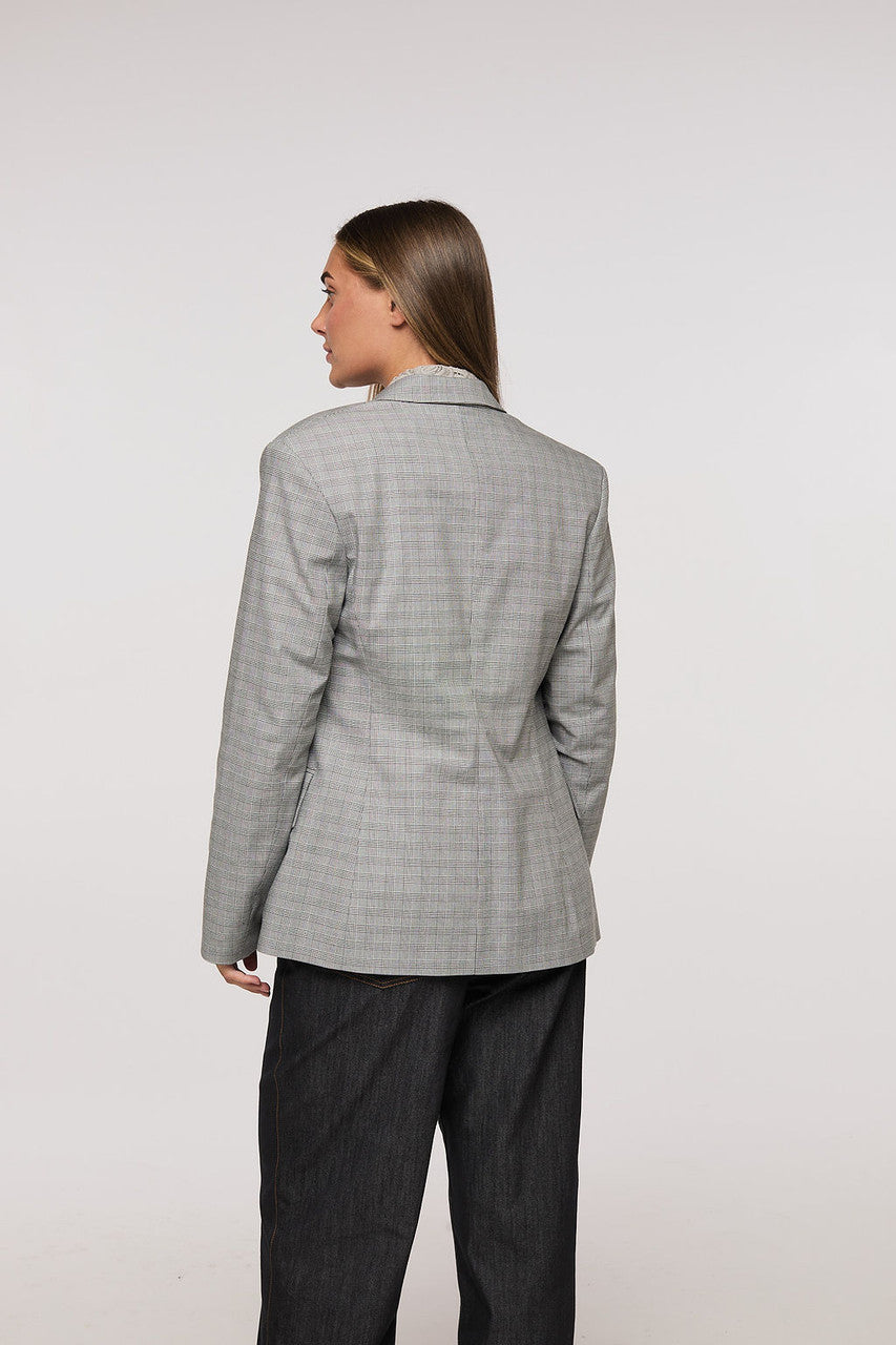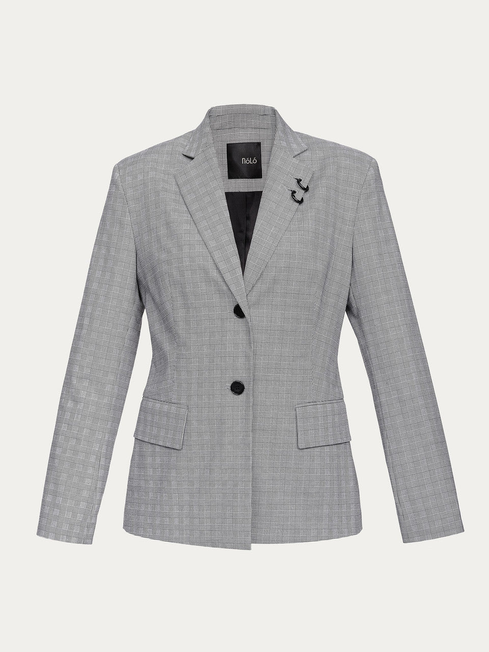 Pelēka, rūtaina vienrindas žakete | AYAKO