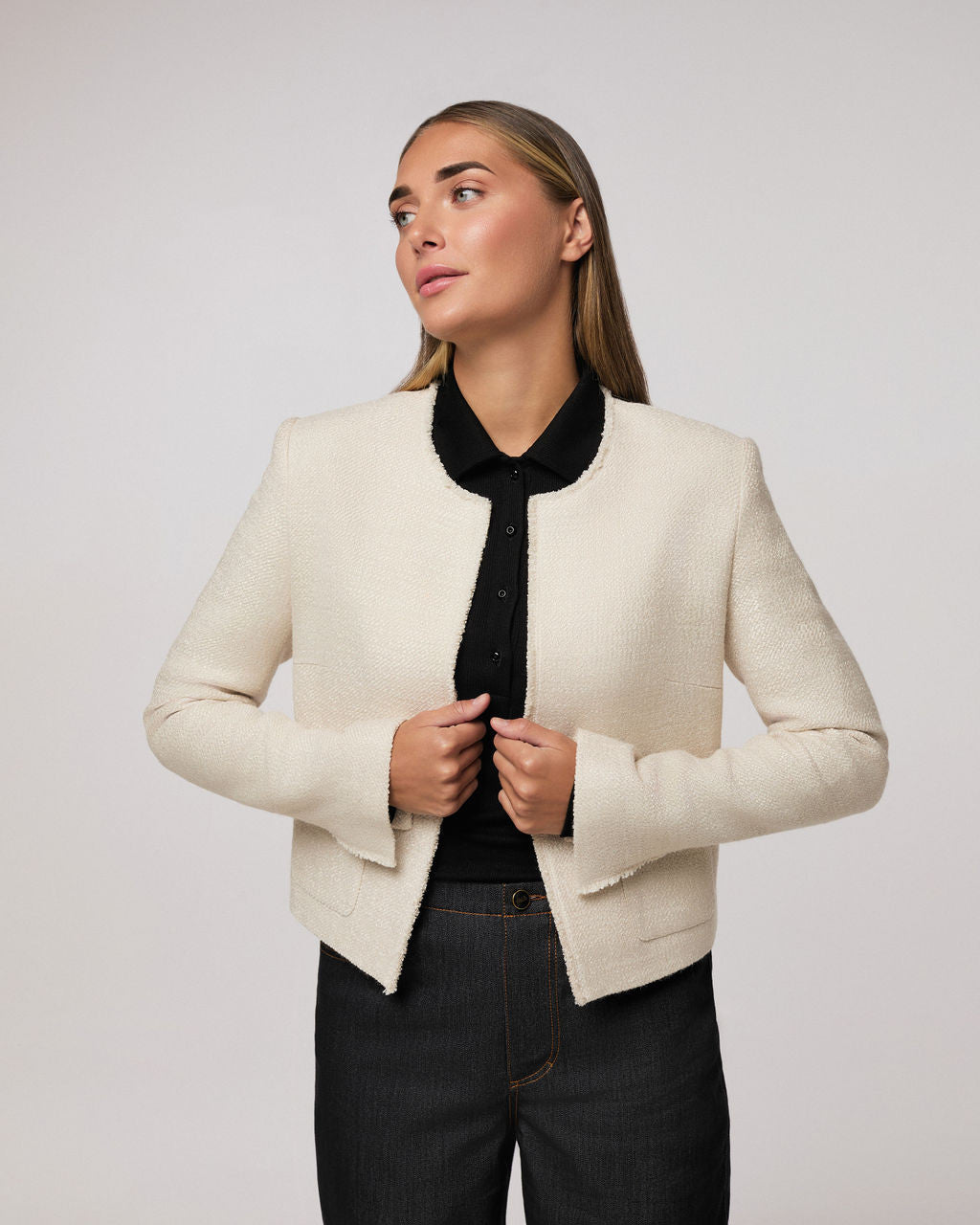 Īsa krēmkrāsas žakete bez aizdares | KOKO