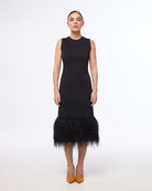 Melna midi garuma kleita ar stausu spalvu detaļām | AZEMI
