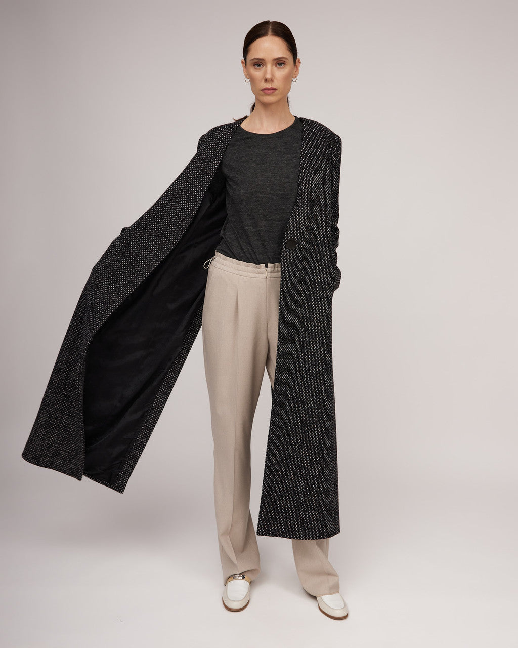 Antracīta krāsu bāzes garderobes vilnas tops ar ovālu kakla izgriezumu - YARIA
