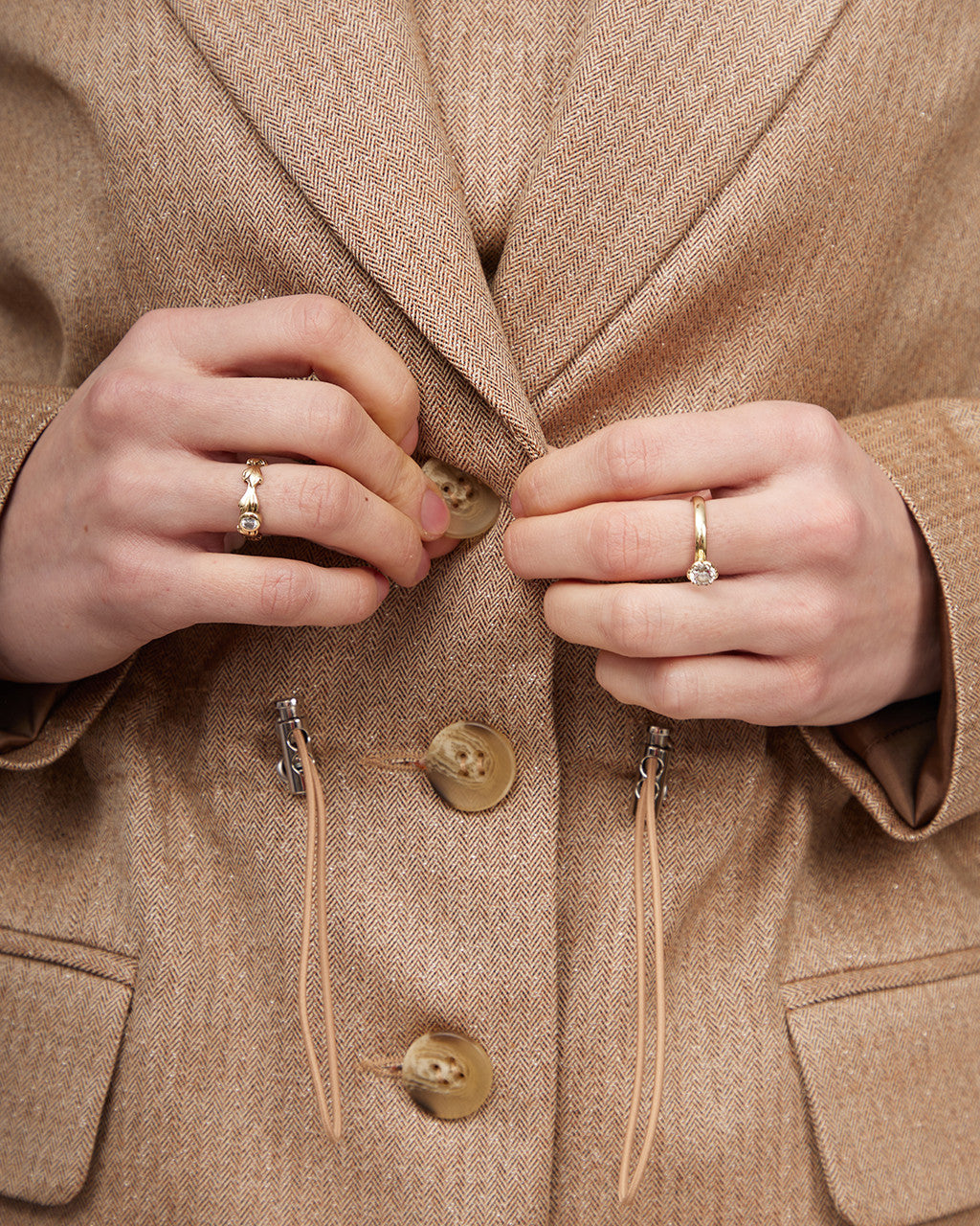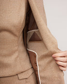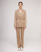 Kamieļkrāsas metāliska spīduma oderēta žakete ar savelkamu jostasvietu | LORETA