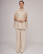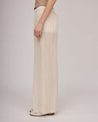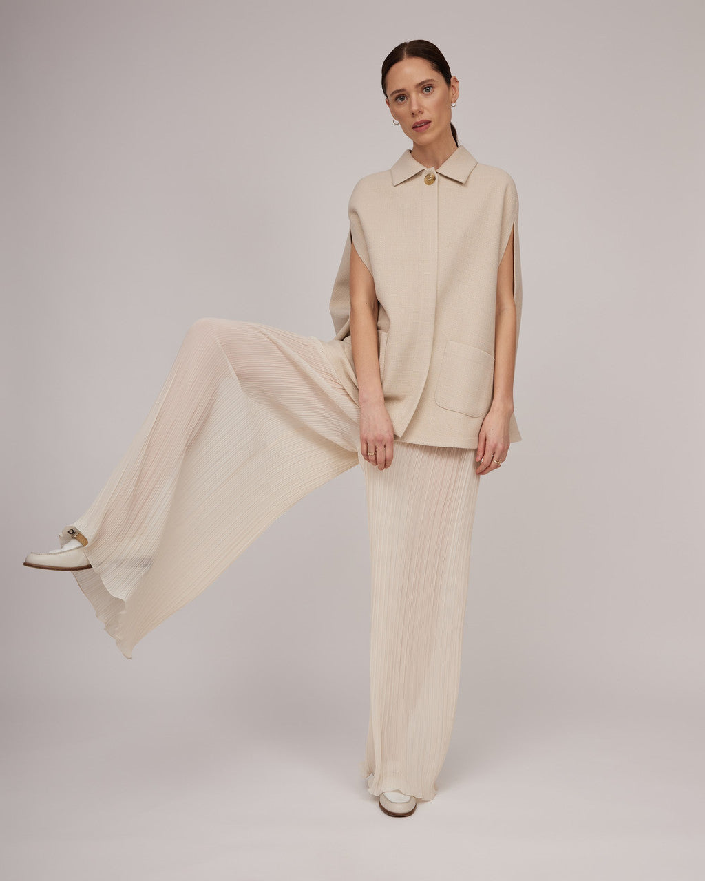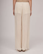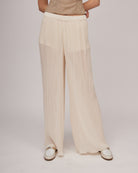 Elegantas bēša toņa caurspīdīgas plisētas bikses ar elastīgu jostu un trikotāžas šortiem | ELDA