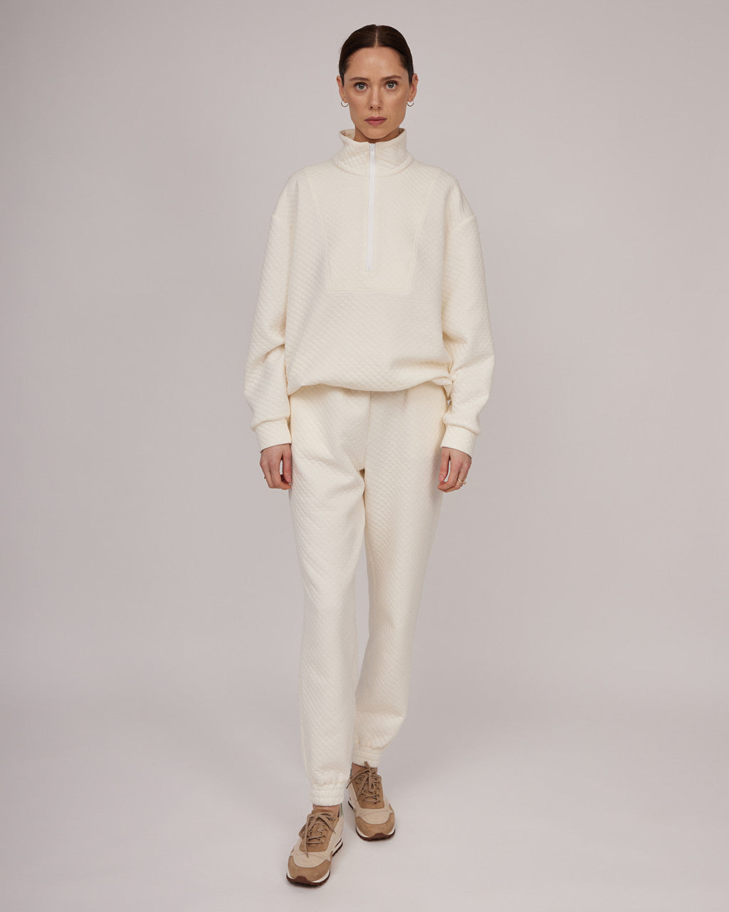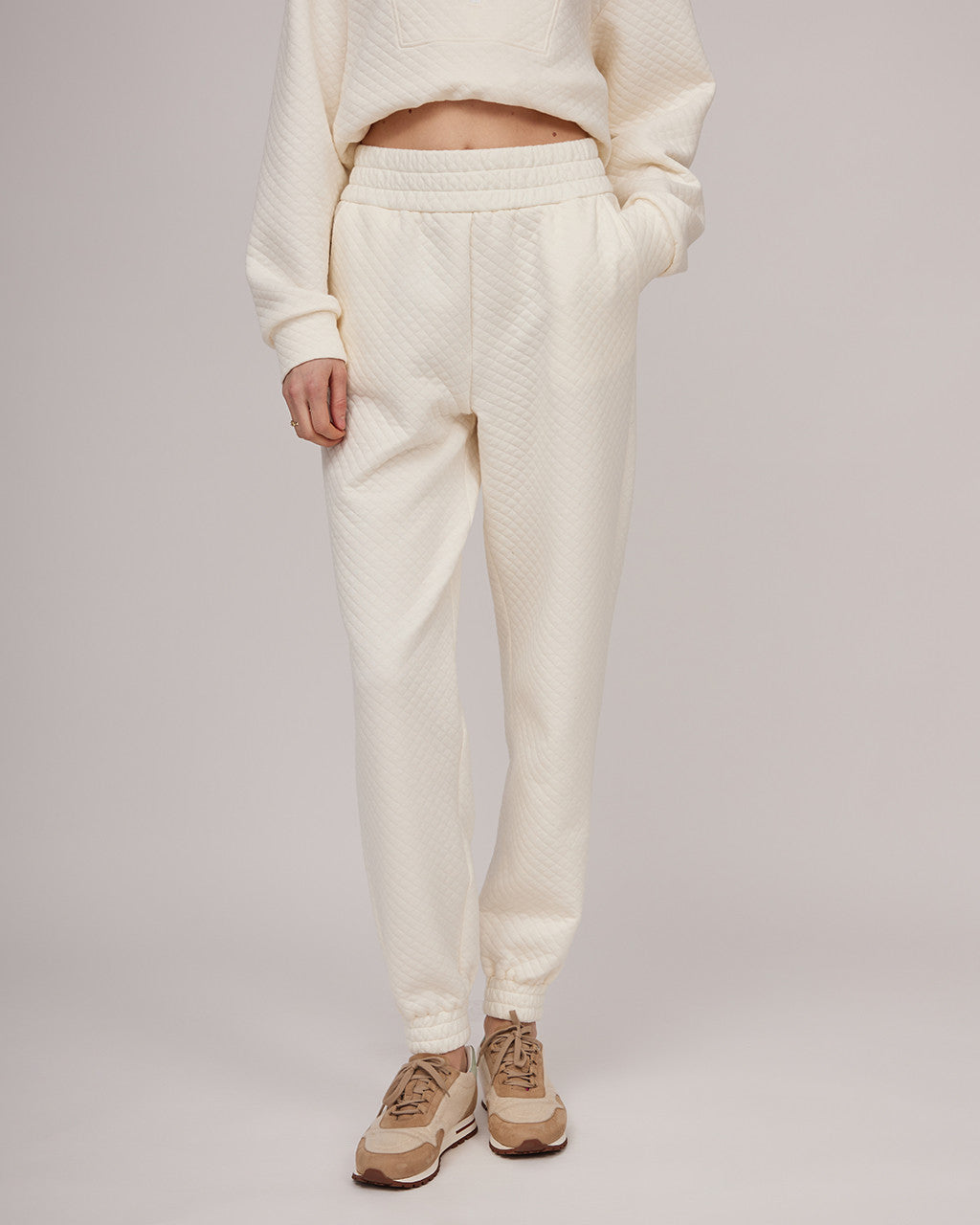 Krēmkrāsas mīkstas kokvilnas ikdienas bikses ar vieglu tekstūru | HEIDI