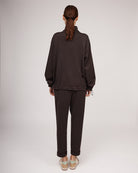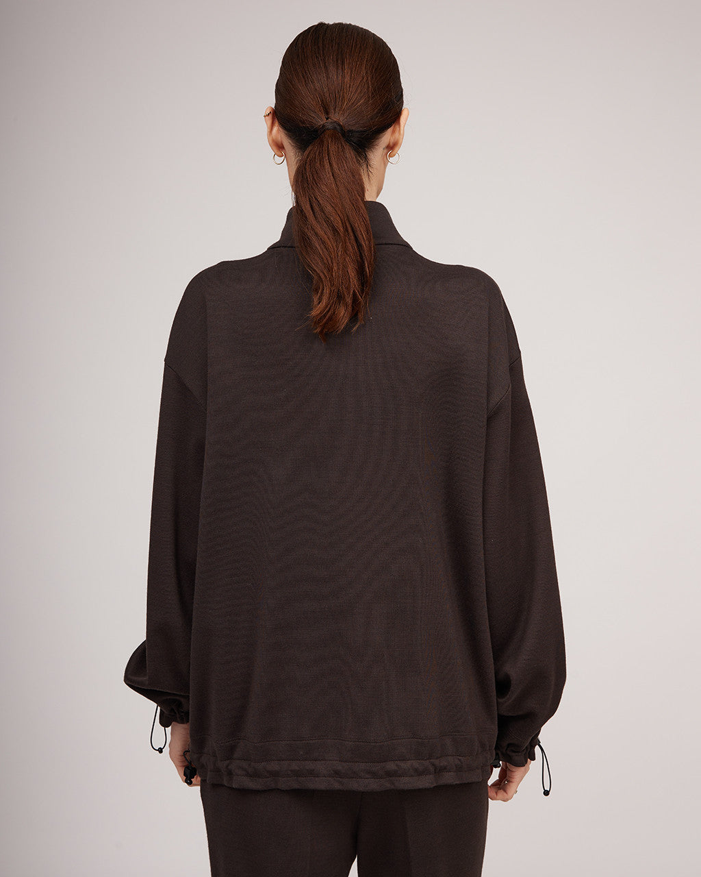 Šokolādes brūna toņa trikotāžas džemperis ar rāvējslēdzēju | JUSTĪNA