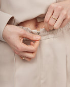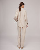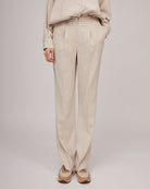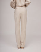 Pelēkbaltas viskozes klasiskas bikses ar elastīgu jostasvietu | KIARA