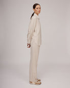 Klasiskas pelēkbaltas bikses, izgatavotas no viskozes.Taisna piegriezuma modelis ar elastīgu, paaugstinatu jostasvietu un fiksatoru nodrošina komfortu visas dienas garumā. Lieliski saskaņojamas ar krekliem vai topiem no mūsu kolekcijas, radot un pievilcīgu tēlu. Ideāla izvēle gan ikdienā, gan lietišķiem tērpiem.