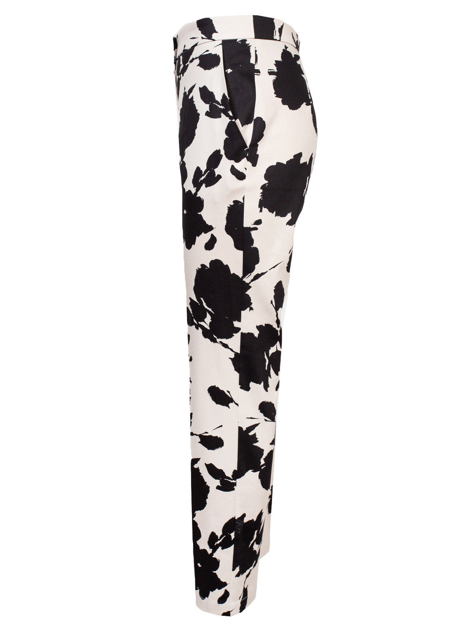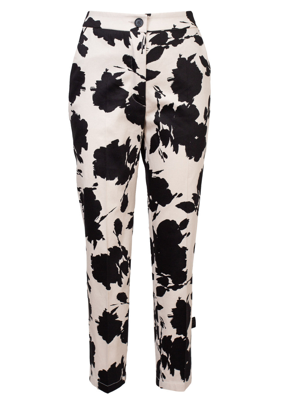 Abstraktas, ziedu raksta, pieguļošas bikses ar augstu jostasvietu un standarta siluetu, ar rāvējslēdzēja aizdari priekšpusē un kabatām sānos ar vīlēm. Vislabāk piestāv mūsu žaketei KATANA un vesti NIKOYA. Saudzīga mazgāšana. Starptautiski izmēri. Atbilst izmēram. 98% KOKVILNA, 2% ELASTĀNS.