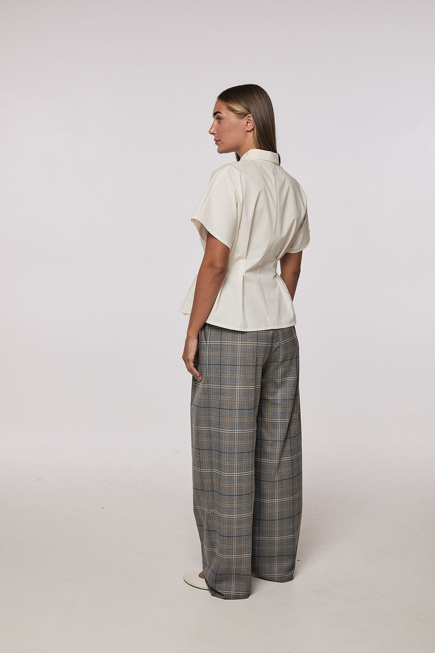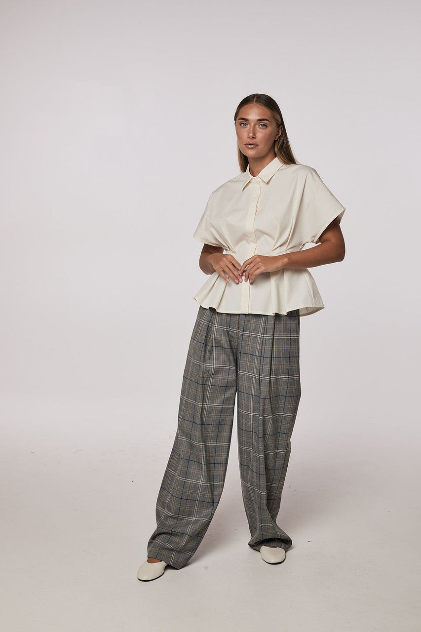 Moderns un elegants papildinājums jūsu garderobei - klasiskās platās rūtainās bikses Akiko. Tās veiksmīgi apvieno mūsdienīgu dizainu ar izsmalcinātu klasiku, padarot bikses ideāli piemērotas ikdienas valkāšanai. Augstā jostasvieta un platais piegriezums nodrošina komfortu un izceļ figūru, savukārt rūtainais raksts piešķir tēlam eleganci un stilīgu akcentu. Lieliski sader ar žaketēm, blūzēm vai ikdienas T-krekliem, radot daudzpusīgu un izsmalcinātu izskatu.