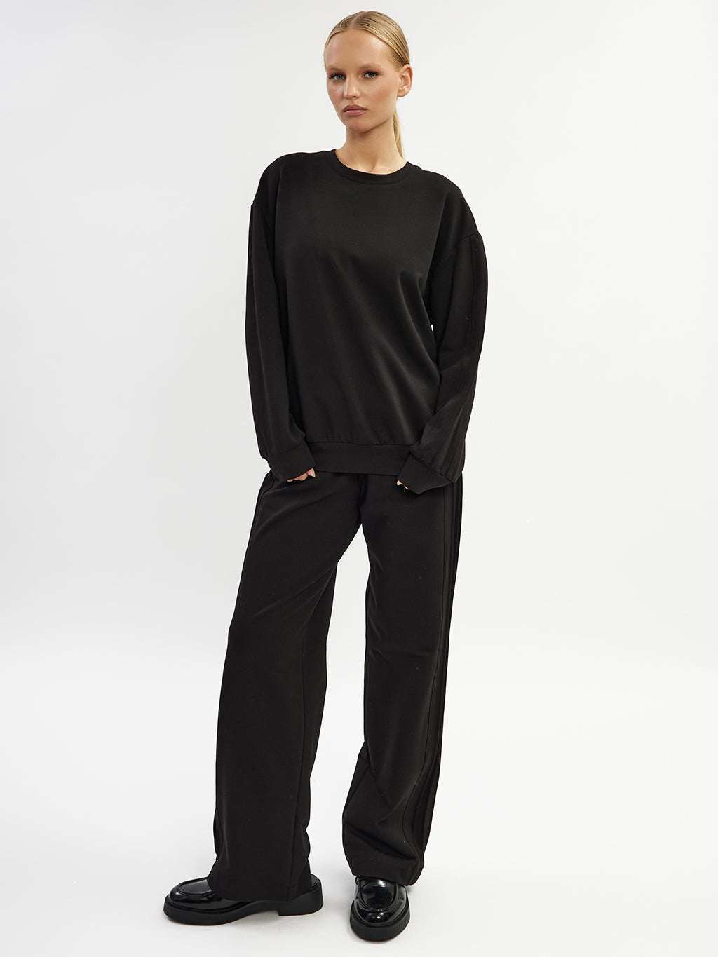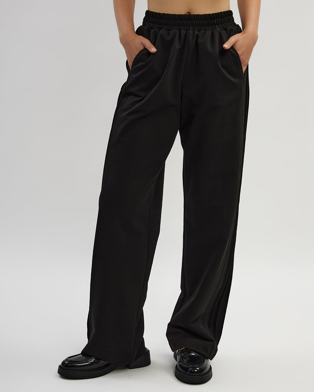 Melnas, taisna piegriezuma kokvilnas bikses | ELSA