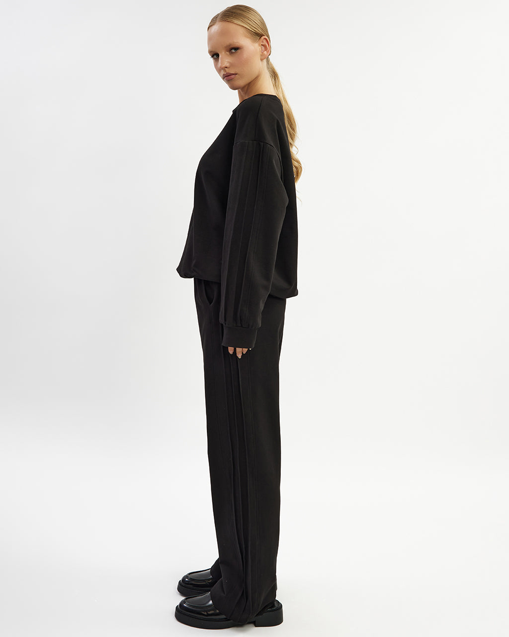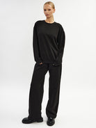 Melnas, taisna piegriezuma kokvilnas bikses. Baudi harmonisku komforta un stila apvienojumu ar ELSA baltajām, taisna piegriezuma biksēm. Elastīgā jostasvieta nodrošina perfektu līdzsvaru starp formu un funkcionalitāti. Bikses ir izgatavotas no elastīga un izturīga trikotāžas auduma, kas nodrošina to mīkstumu un ilgtspējību. Tās ir ideāli piemērotas ikdienas gaitām vai sportiska tēla radīšanai - neatņemama sastāvdaļa mūsdienīga garderobē. Šis modelis piestāv dažādiem augumu tipiem, nodrošinot kustību brīvību visas dienas garumā.