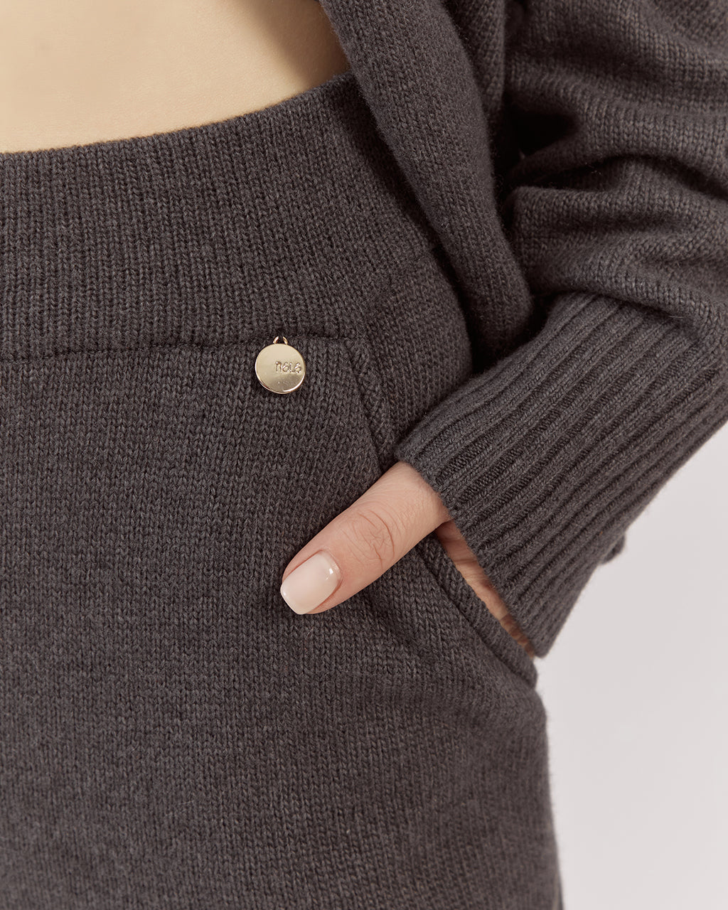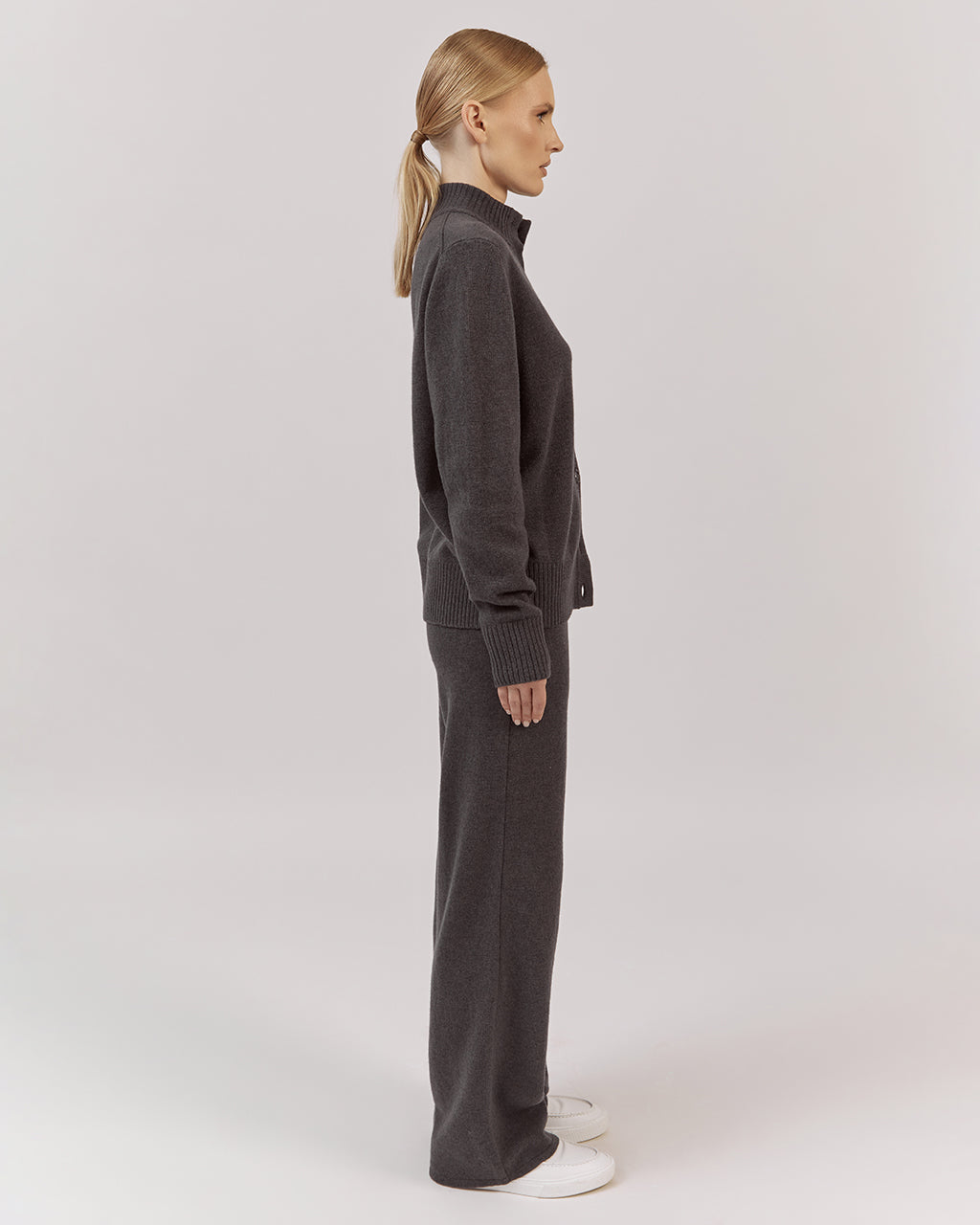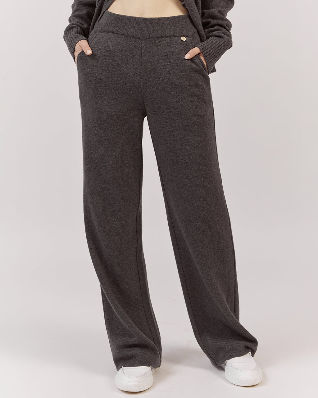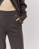 Platas adītas bikses apvieno auduma komfortu ar daudzpusību. Elastīgā jostasvieta nodrošina ideālu piegulumu. Dubultā adījuma merīnvilnas un kašmira dzija piešķir apģērbam vieglumu un mājīgumu.