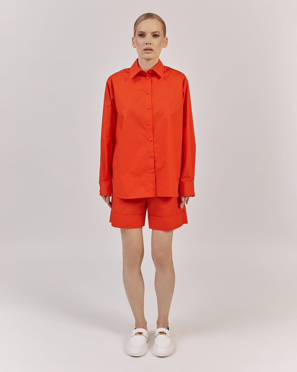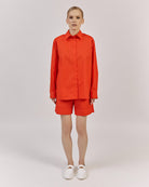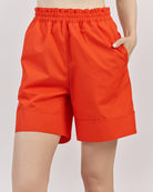 SARKANI KOKVILNAS ŠORTI AR AUGSTU VIDUKLI |TULIA