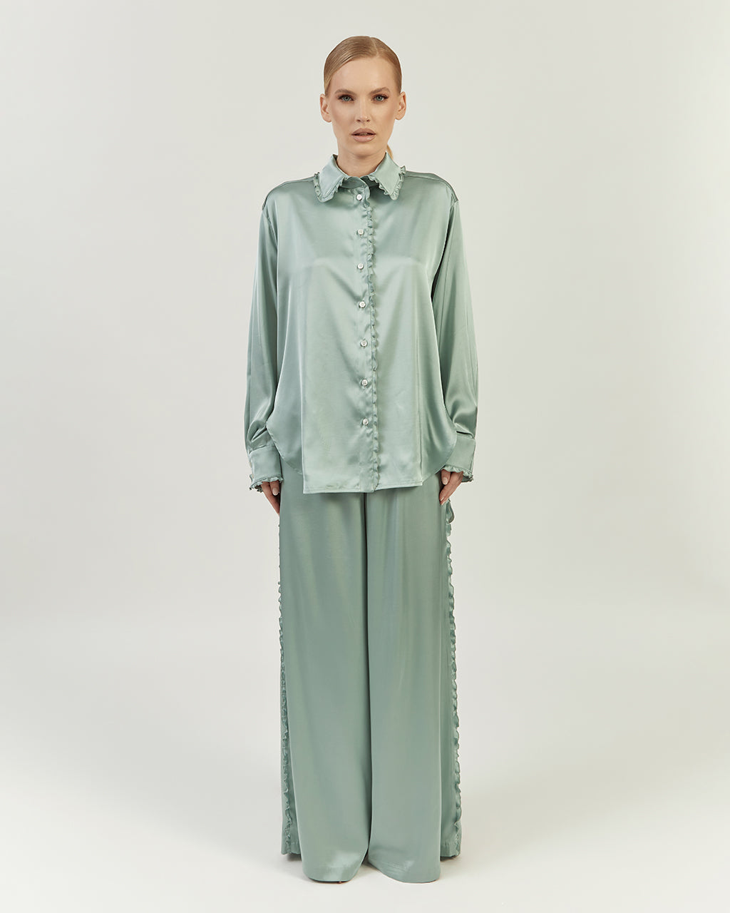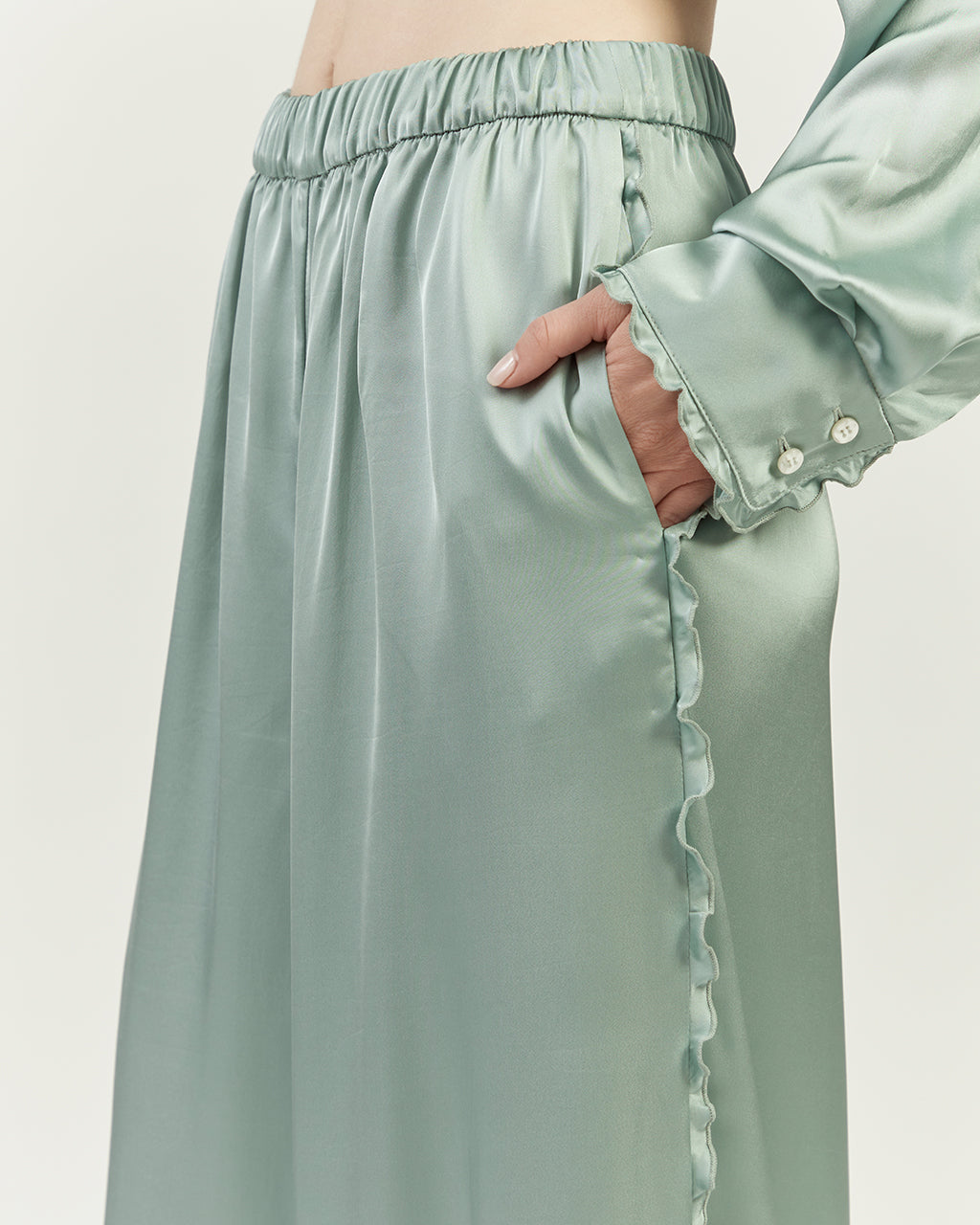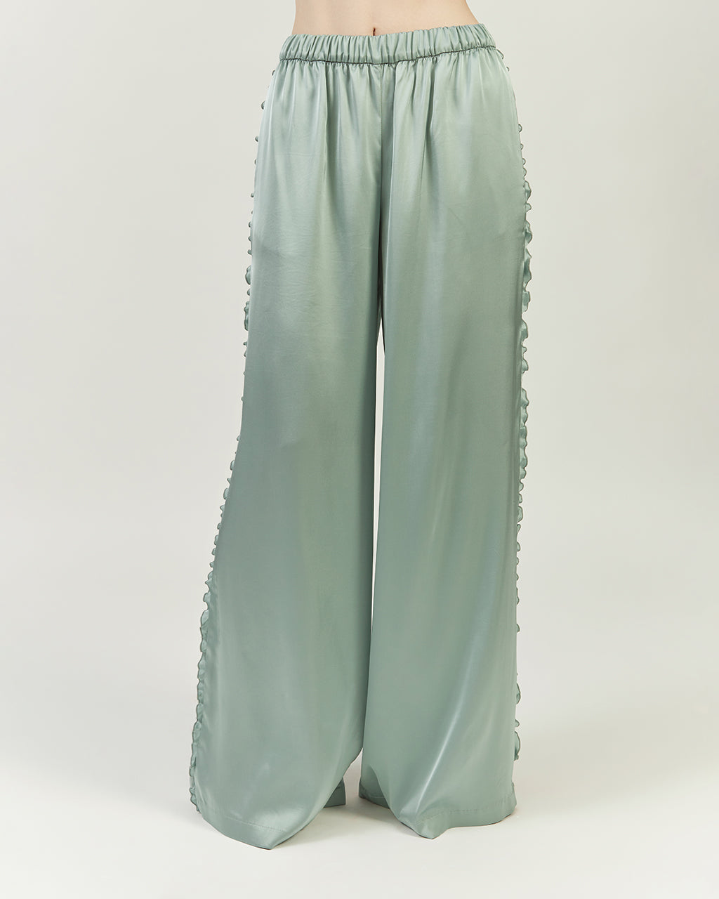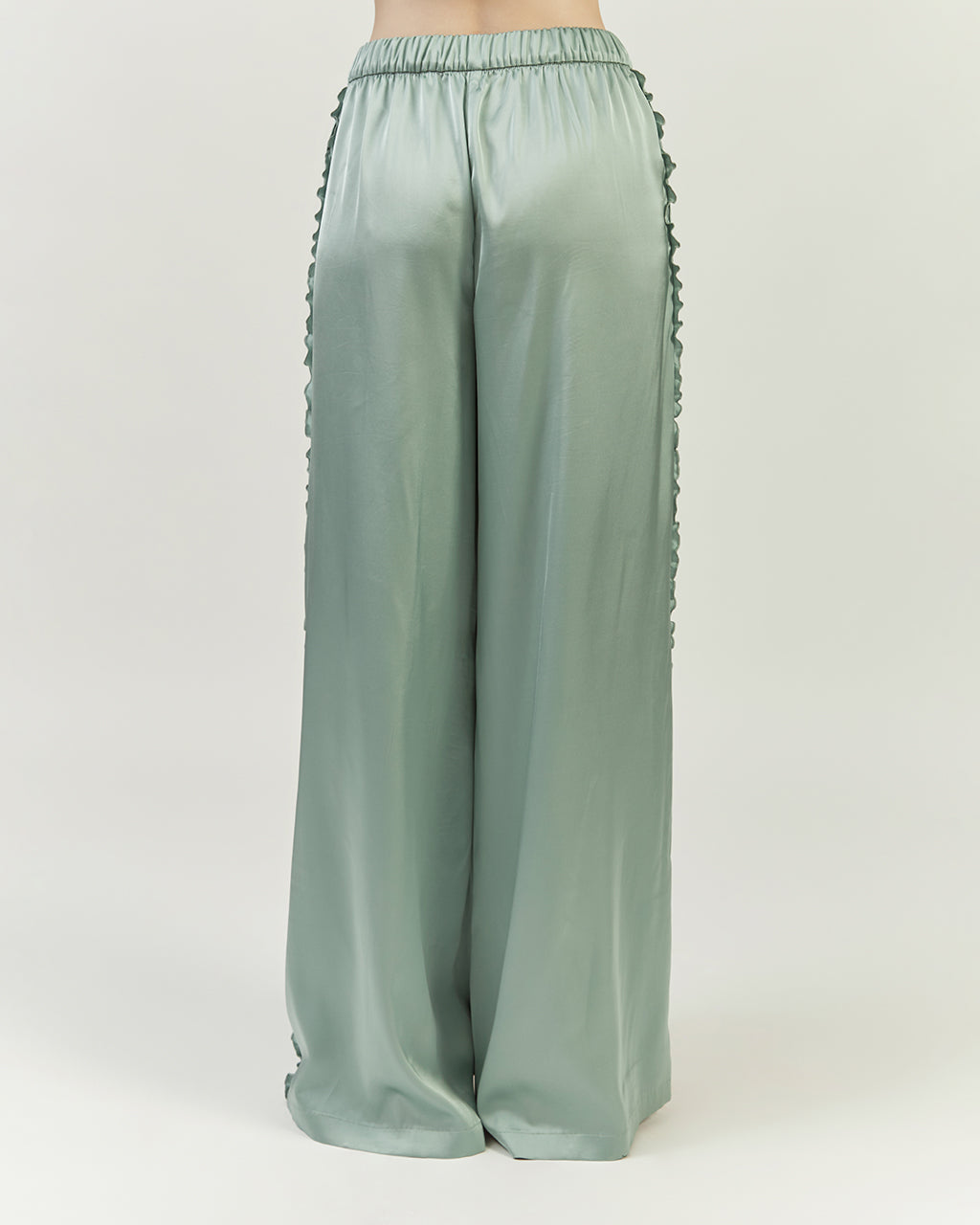 Platas, garas bikses ar elastīgu jostasvietu un sānu kabatām — lielisks atradums pamata garderobei. Ideāli piemērotas pilsētas pastaigām, kafejnīcas apmeklējumam vai vakara iziešanai. Izgatavotas no maiga un zīdaini gluda viskozes auduma, kas nodrošina komfortu visas dienas garumā.