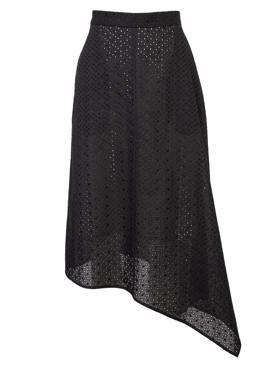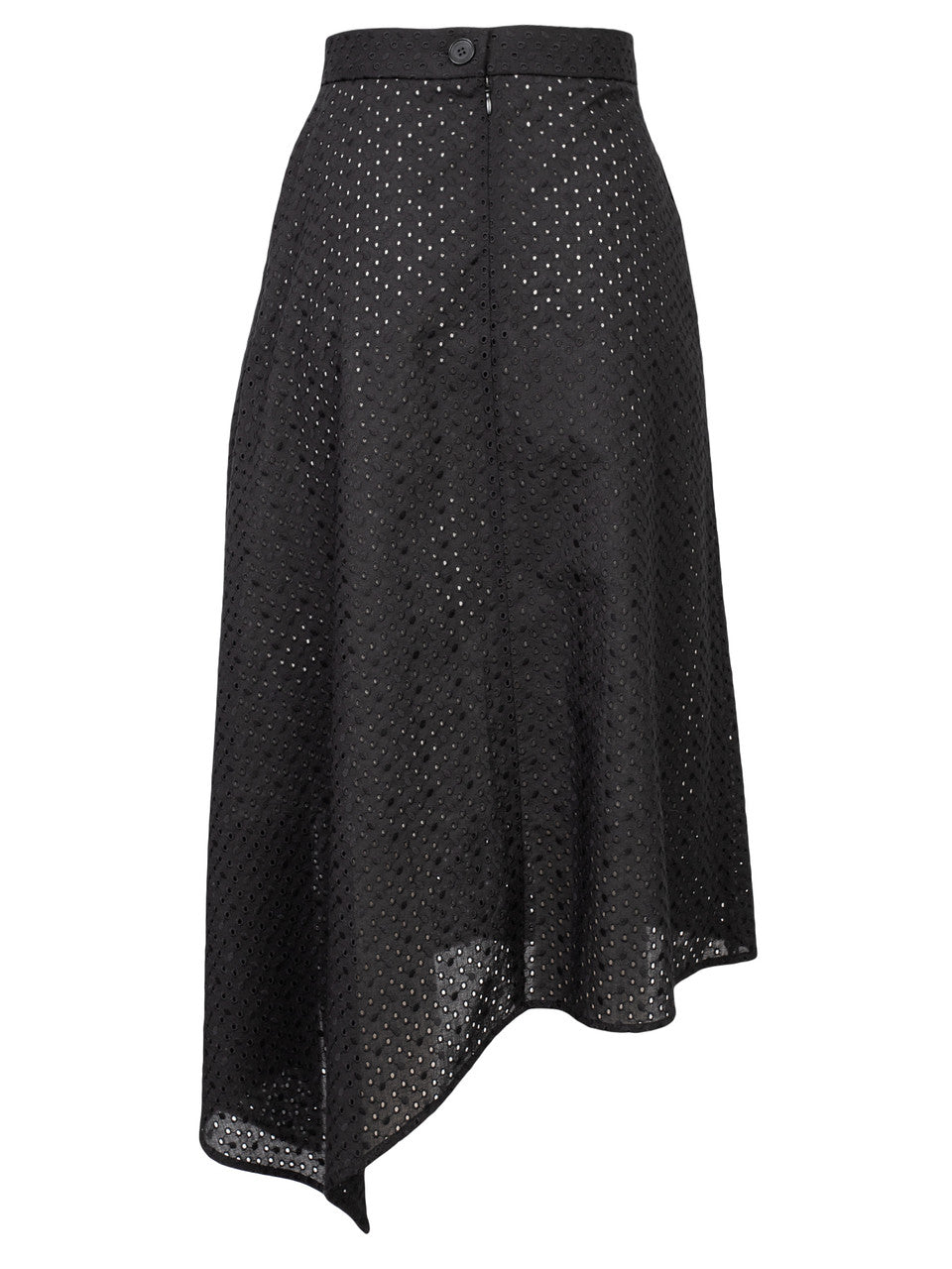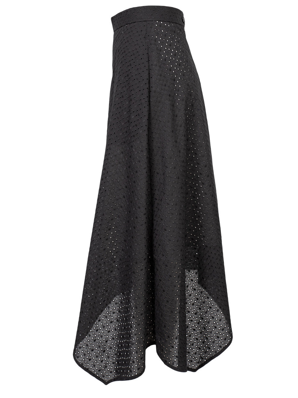 Melni Izšūšanas Kokvilnas Asimetriski Midi Svārki | MICHELLE