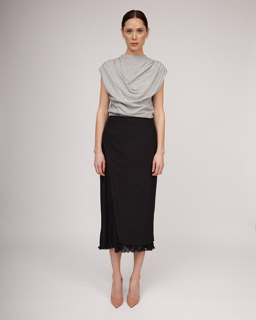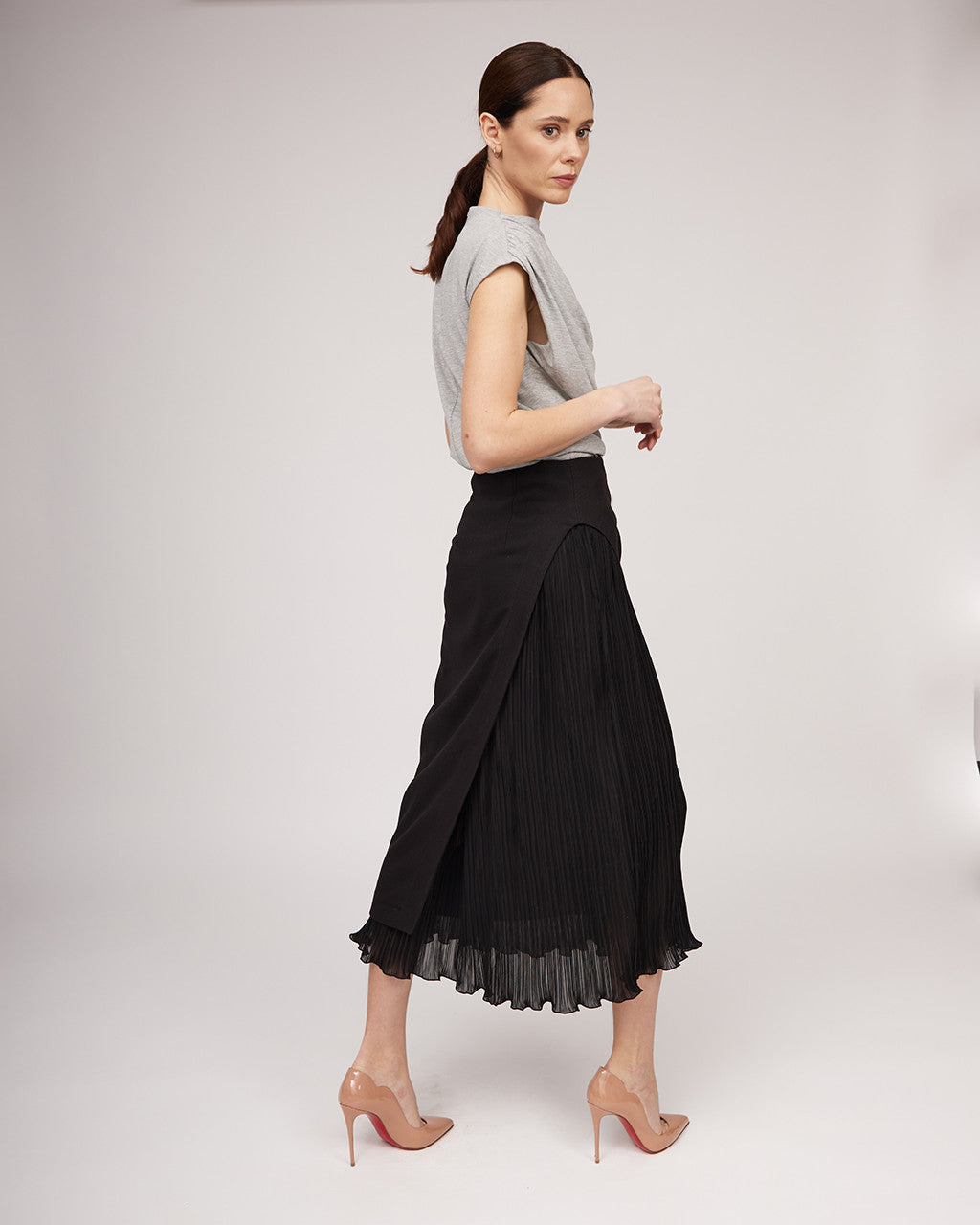 Melni midi garuma svārki ar izteiksmīgu siluetu un plisējumu | IRENE