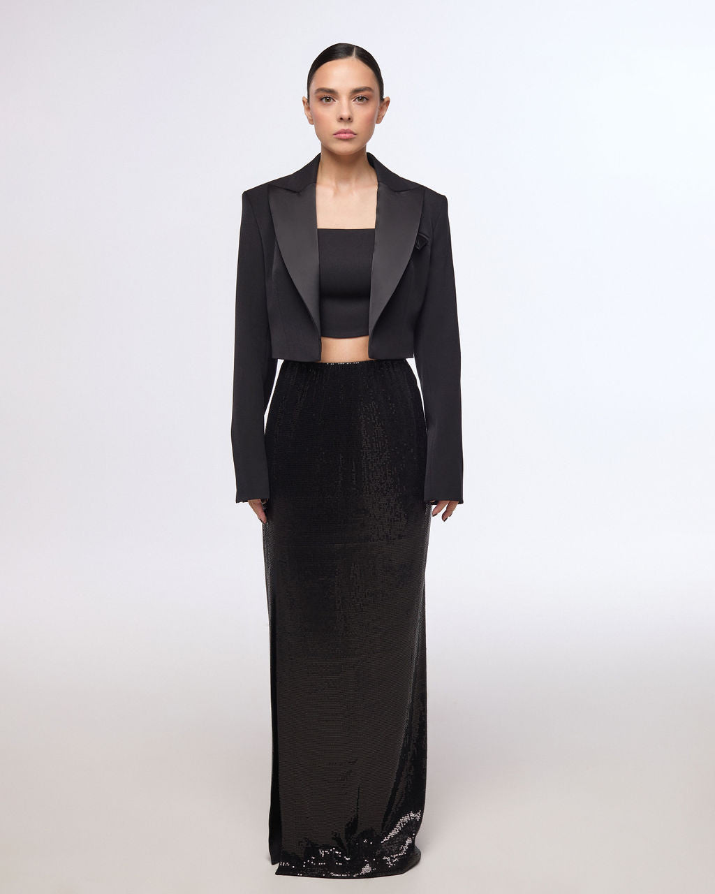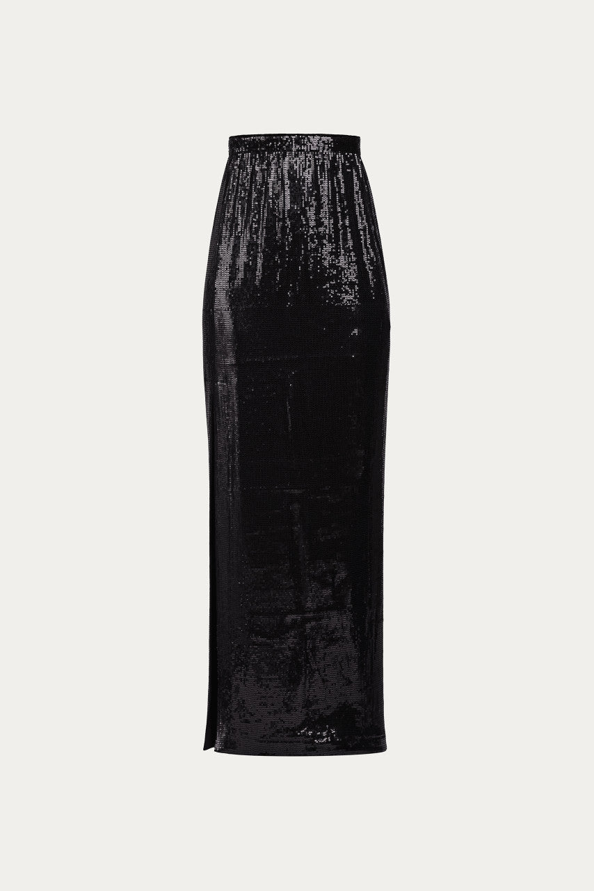 Melni fliteru, grezni svētku maksi svārki ar šķēlumu | YAIOI