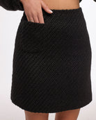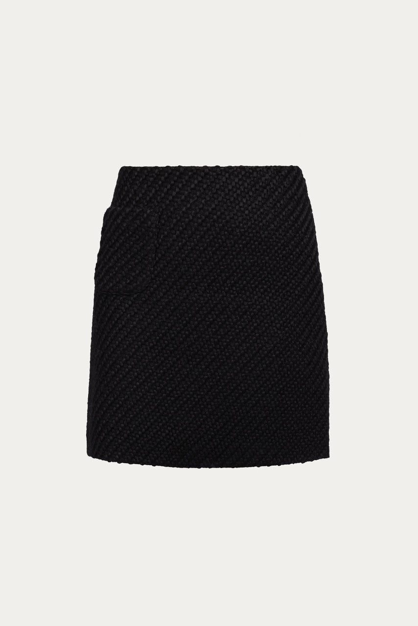 Mīksti tvīda mini svārki ar buklē tekstūru piešķir eleganci gan svētku, gan ikdienas stilam. Šo sievišķīgo modeli var viegli kombinēt ar dažādiem topiem, piemēram, mājīgu kašmira džemperi vai jaku no mūsu kolekcijas. Svārkiem ir praktiska rāvējslēdzēja aizdare aizmugurē un neliela piešūta kabata priekšpusē.