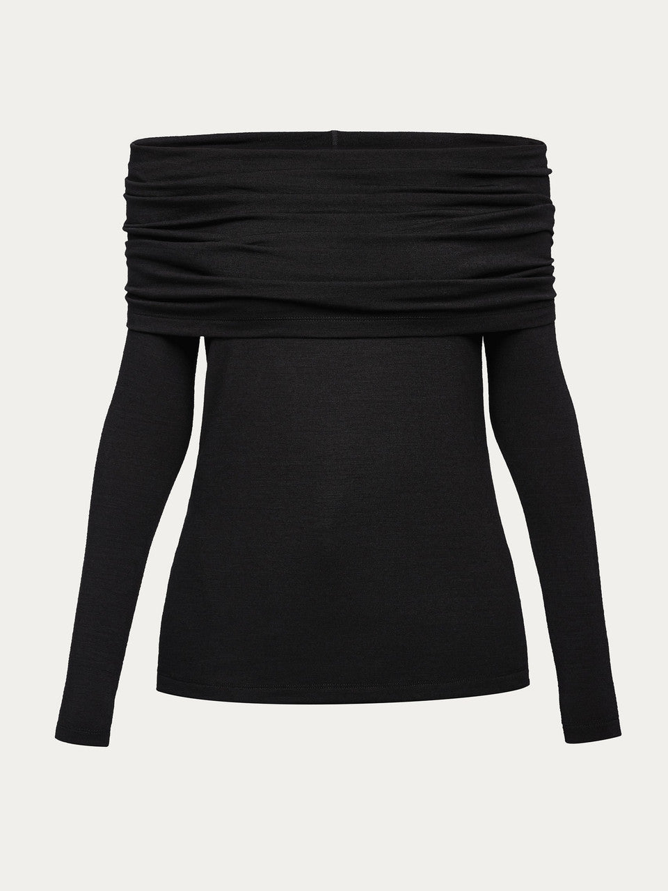 Elegants tops, kas izgatavots no mīksta un elastīga vilnas un elastāna maisījuma auduma, piešķir izsmalcinātu izskatu, neupurējot komfortu. Elastīgā apdare nodrošina drošu piegulšanu pleciem, radot sievišķīgu un pievilcīgu tēlu. Ideāli piemērots gan vakara iziešanai, gan ikdienas stila papildināšanai. Kombinējiet ar tonālu apakšveļu nevainojamam izskatam.