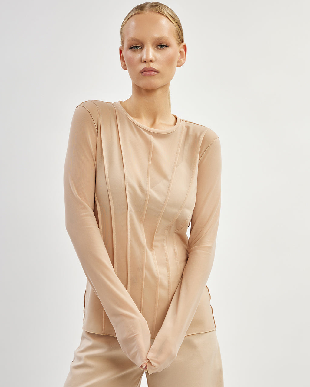 Puscaurspīdīgs tops ar akcentētām šuvēm.