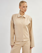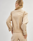 Bēša bomberjaka. Lakonisks, brīva piegriezuma modelis no bieza kokvilnas auduma ar oderi. Jakai ir pārdomāts piegriezums, pogas paslēptas zem atloka un funkcionālas kabatas. Apģērba apakšmala muguras daļā ir savilkta ar gumiju, kas piešķir siluetam apjomu. Mēs iesakām šo bomberjaku kombinēt ar džinsiem vai mūsu kolekcijas biksēm.