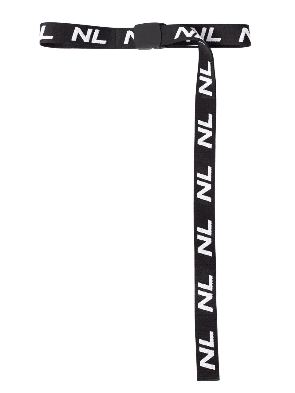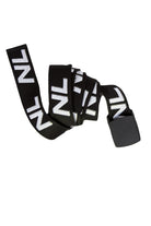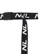 Melna Nolo industriāla josta ar NL žakarda logotipiem un melnu plastmasas sprādzi ar klikšķi. Garums: 165 cm, augstums: 4 cm. Materiāls: 60% poliamīds, 40% poliesters. Uni izmērs. Lieliski piestāv visām Nolo kleitām, kardigāniem un topiem.