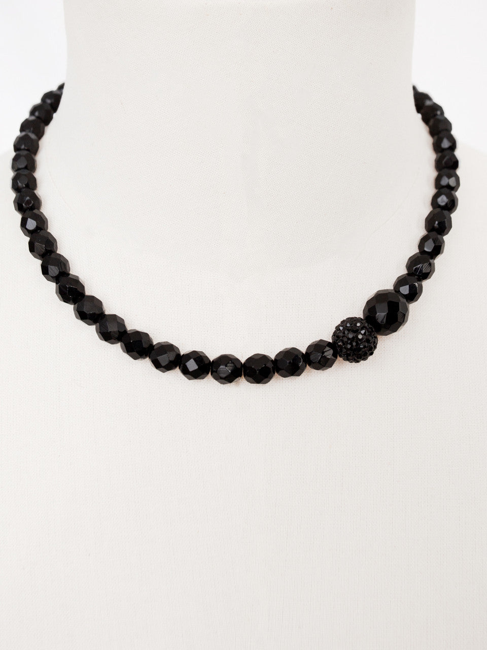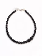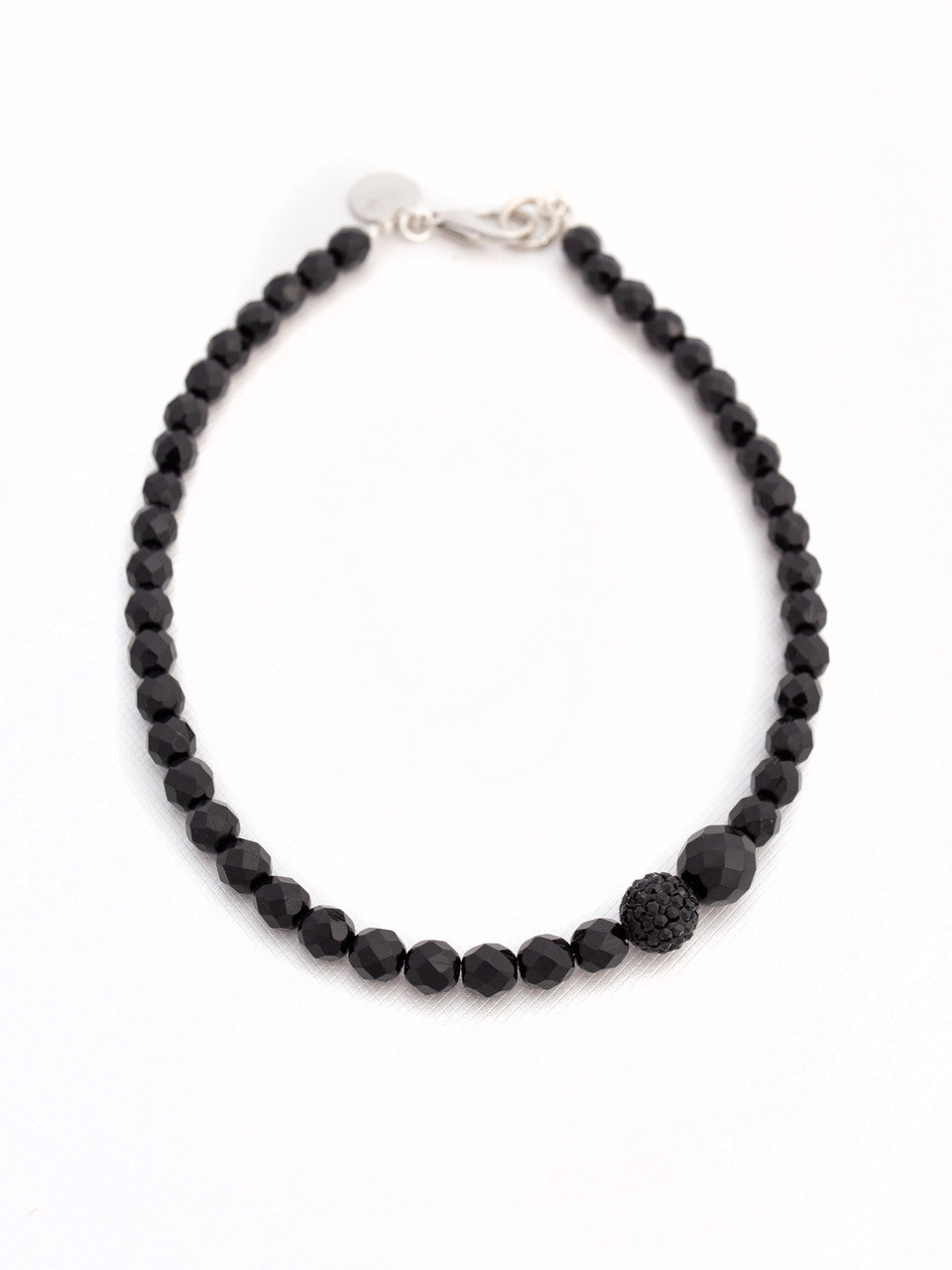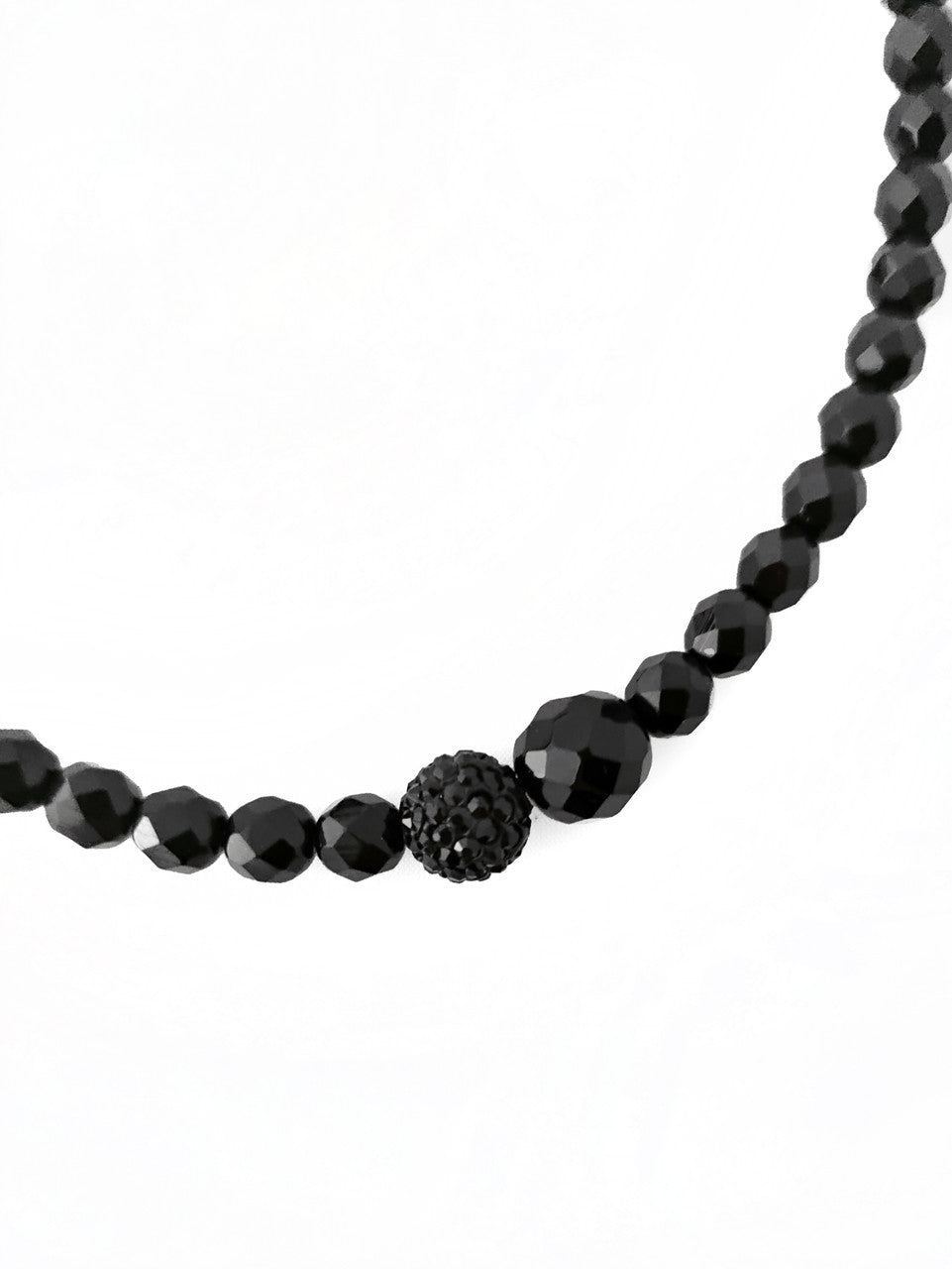 Melnas Čehijas kristāla stikla pērlītes ar Swarovski melnu pavé pērlīti, asimetrisks dizains ar mainīgām pērlītēm dažādos izmēros un omāra spīles aizdari.