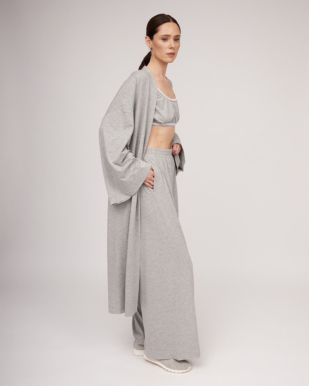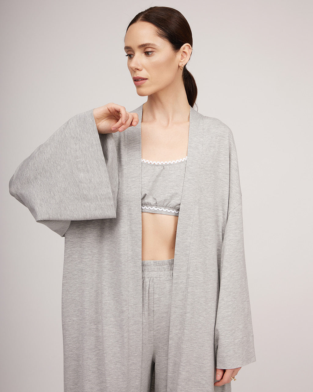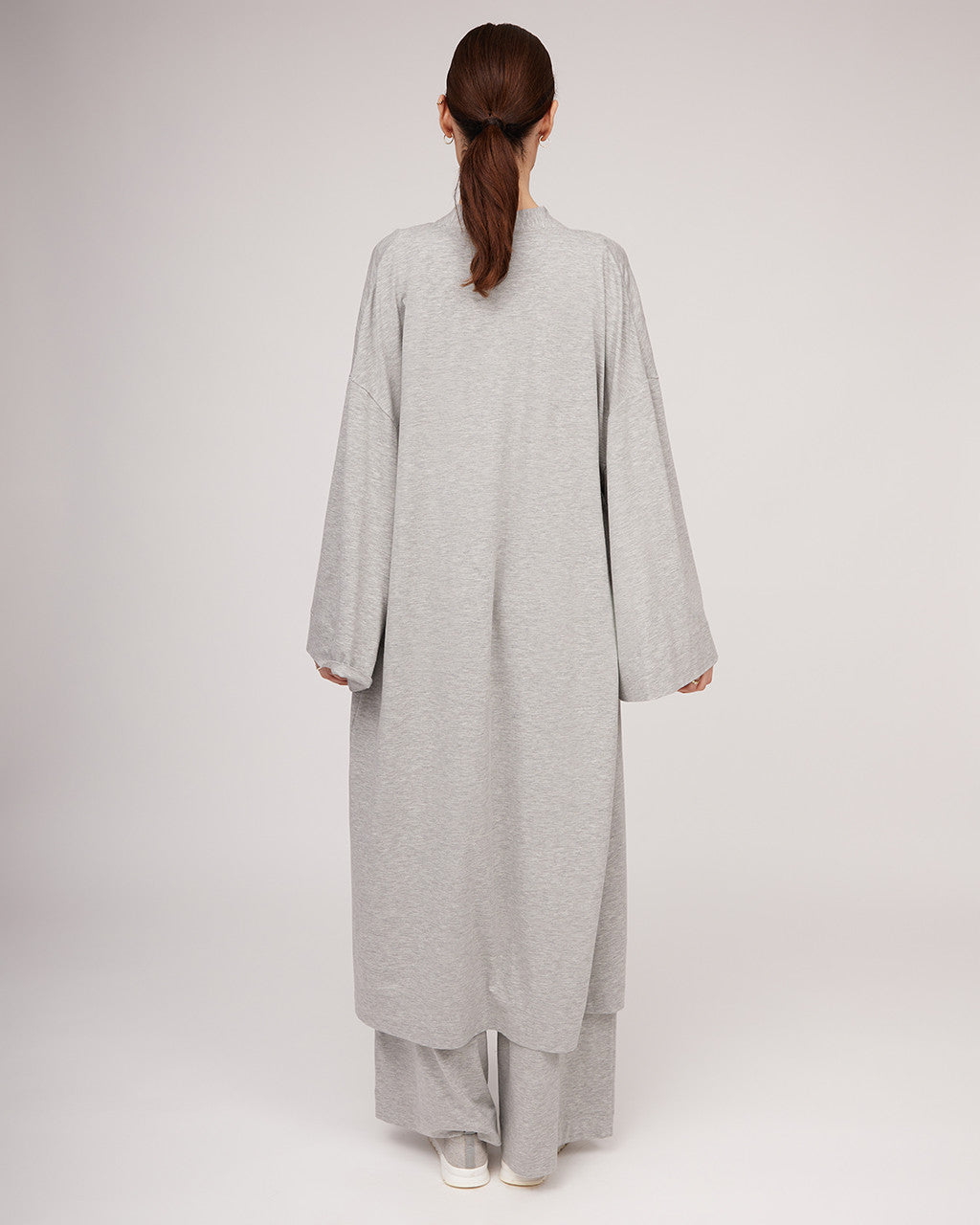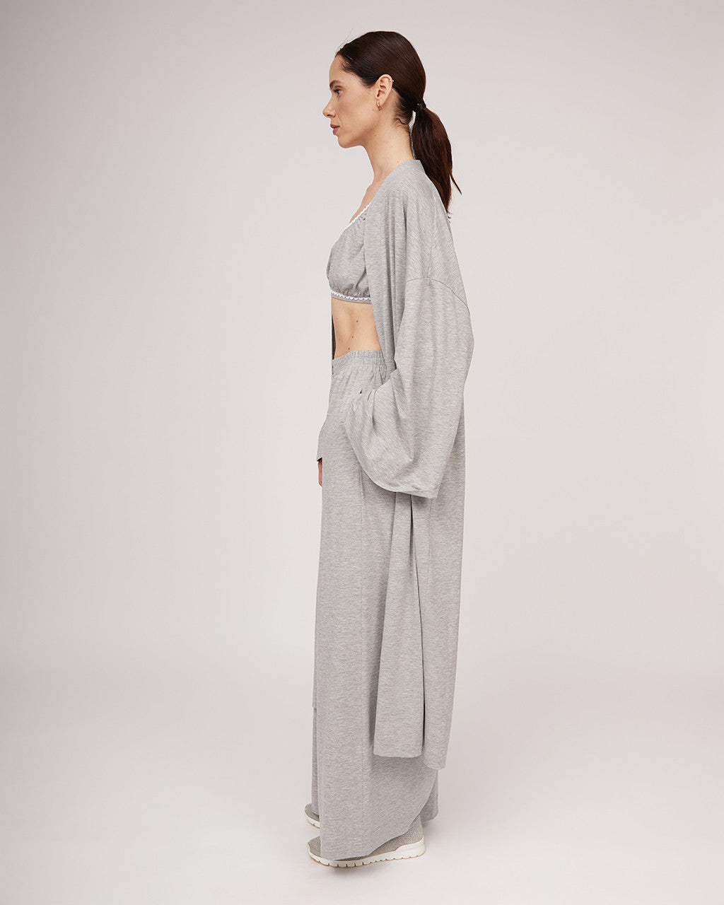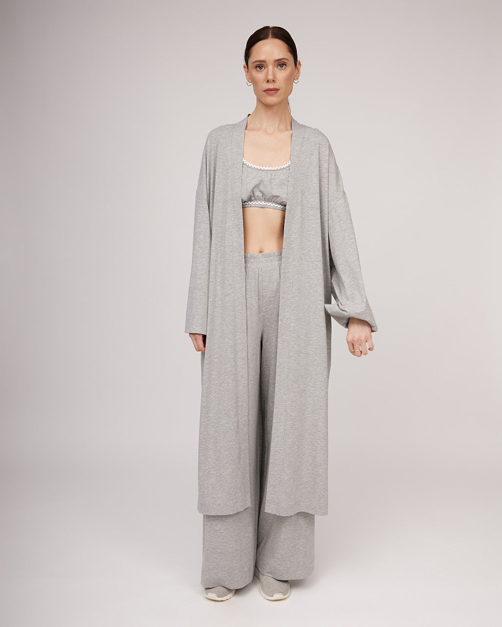 Gaiši pelēks halātveida kardigans bez aizdares | TONIJA