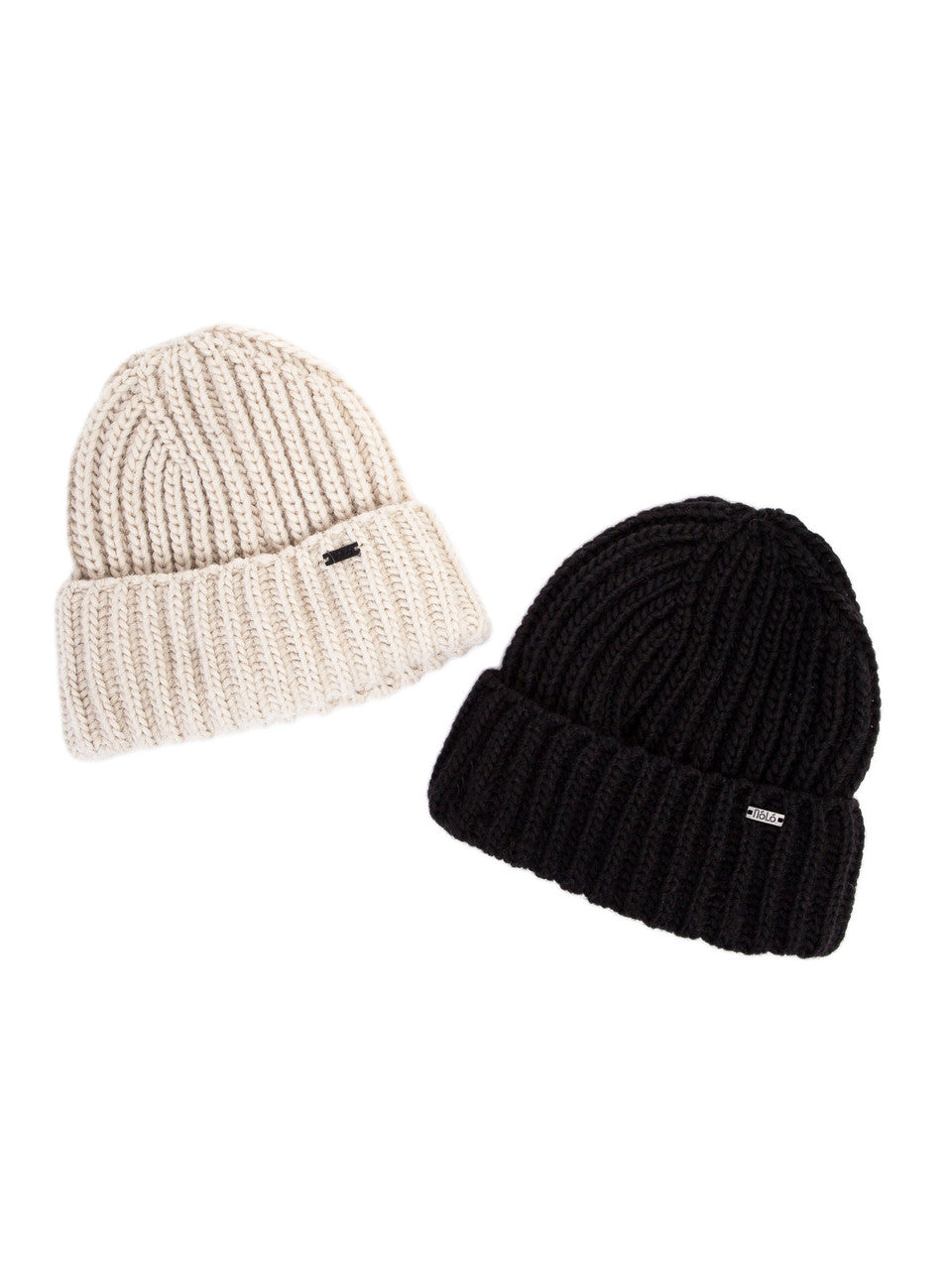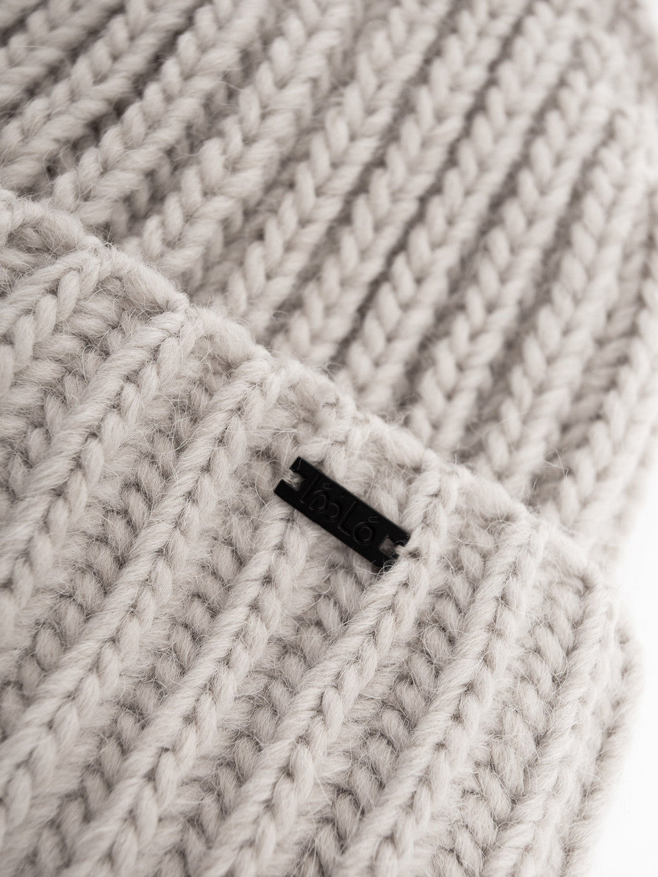 Leduspelēka rievota vilnas maisījuma beanie ar pārlocāmu aproci | HELMIJA