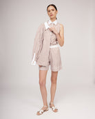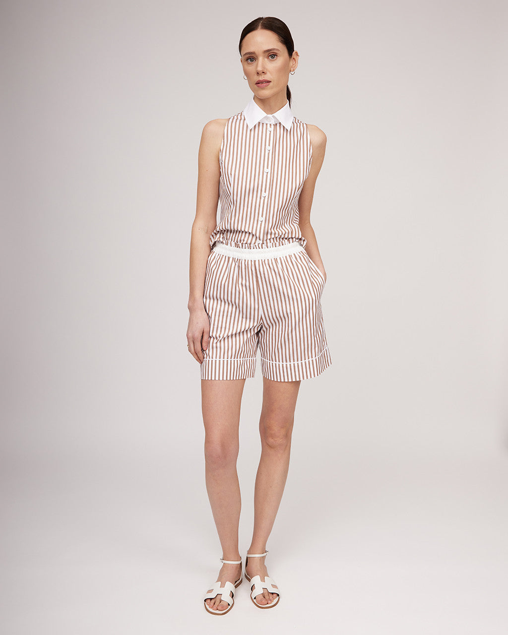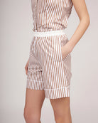 Kamieļkrāsas strīpaini brīvā laika kokvilnas šorti | TUĻIJA