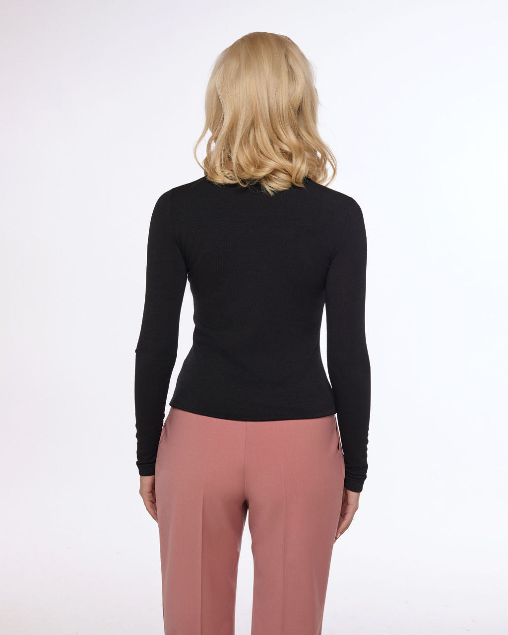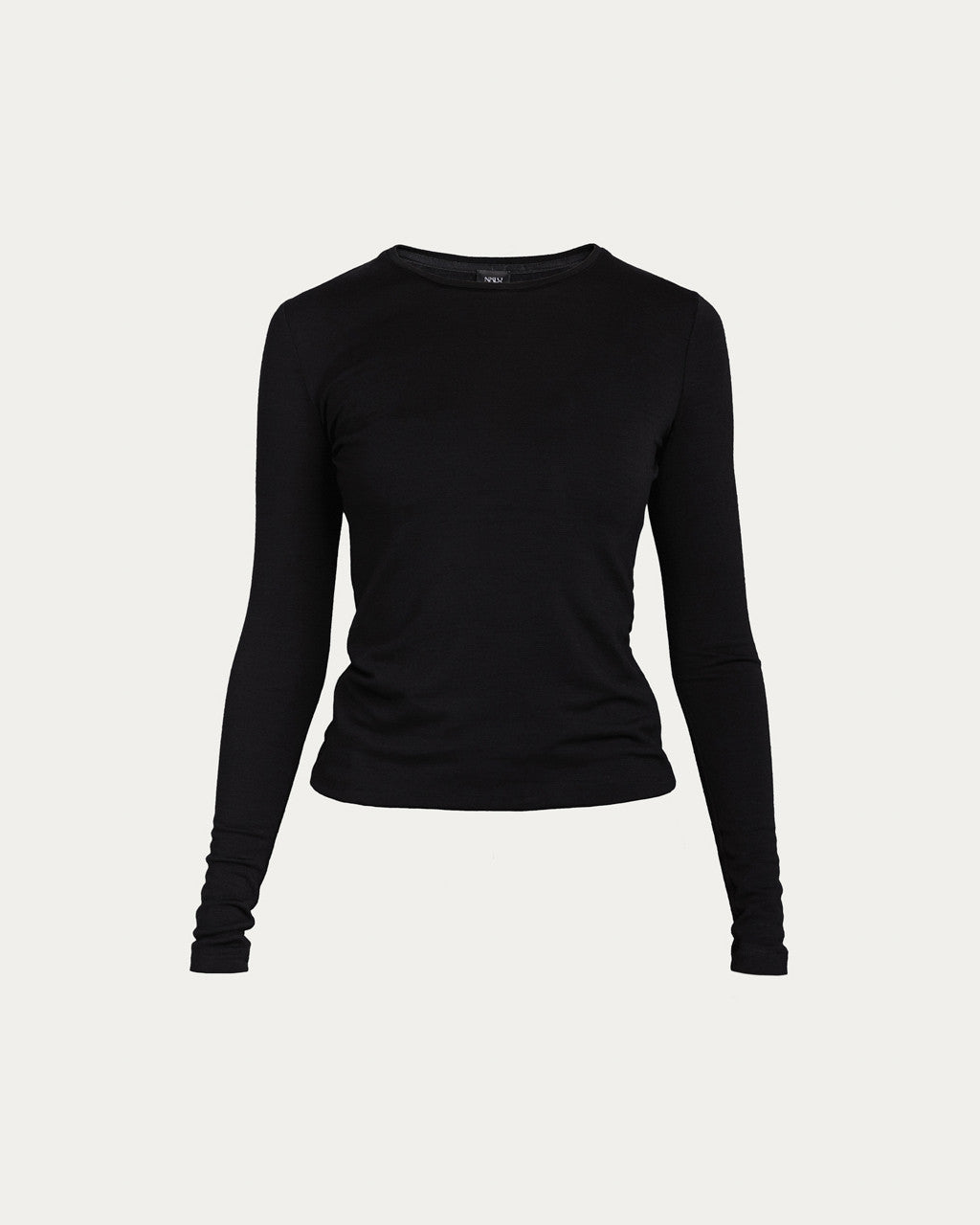 Melns vilnas džersija tops ar garām piedurknēm | YARI