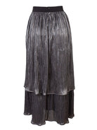 Metāla krāsas daudzslāņaini plisēta auduma Midi svārki | GINA