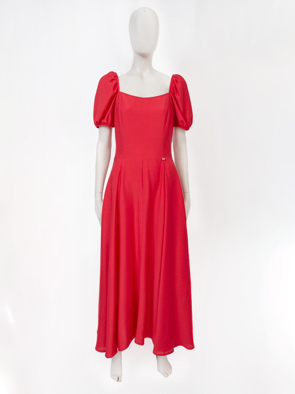 Sarkana viegla viskozes midi kleita ar piedurknēm | ENMEI