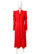 Sarkana Midi kleita ar drapētām piedurknēm un sasienamu kakla lentu | SAYAKA