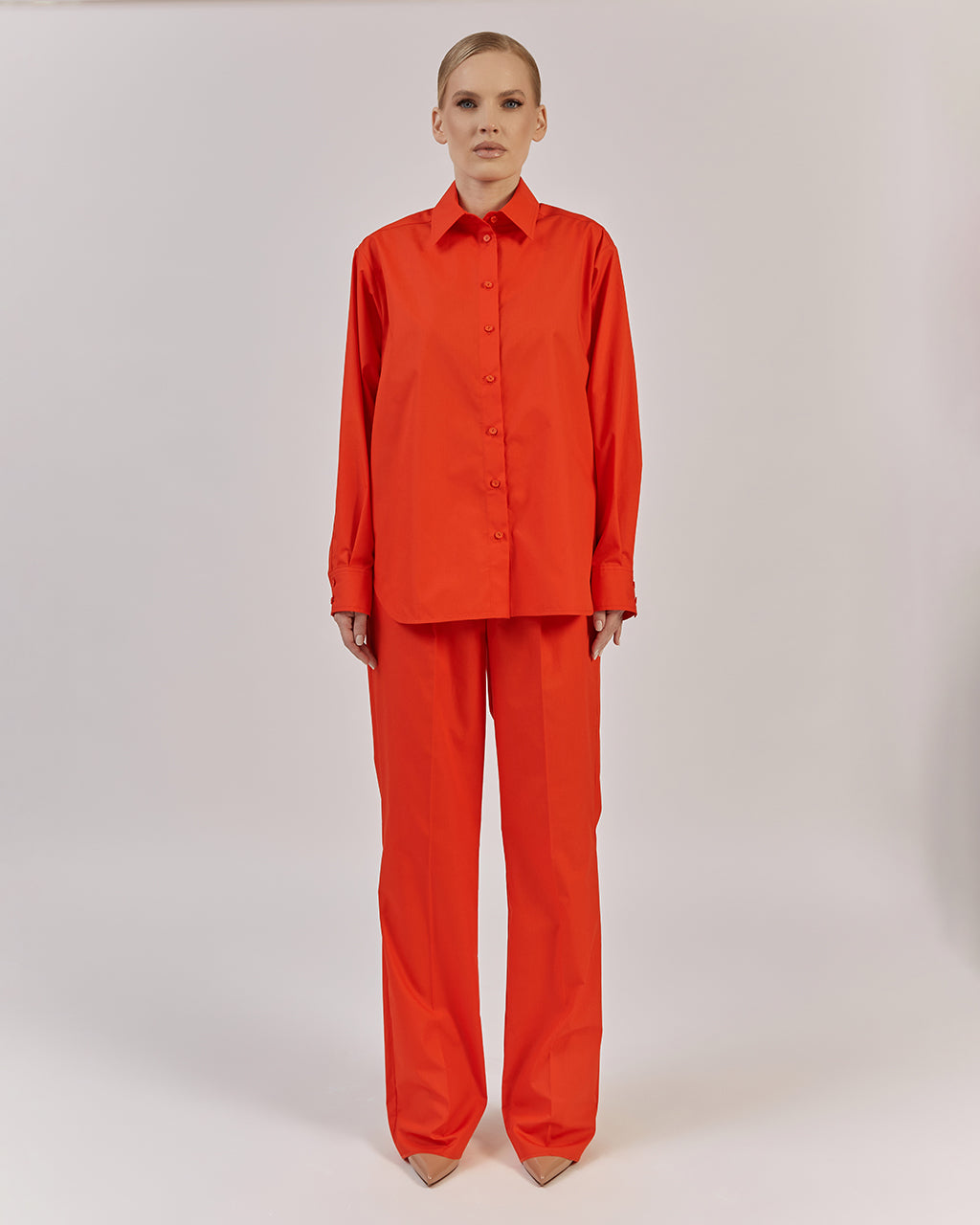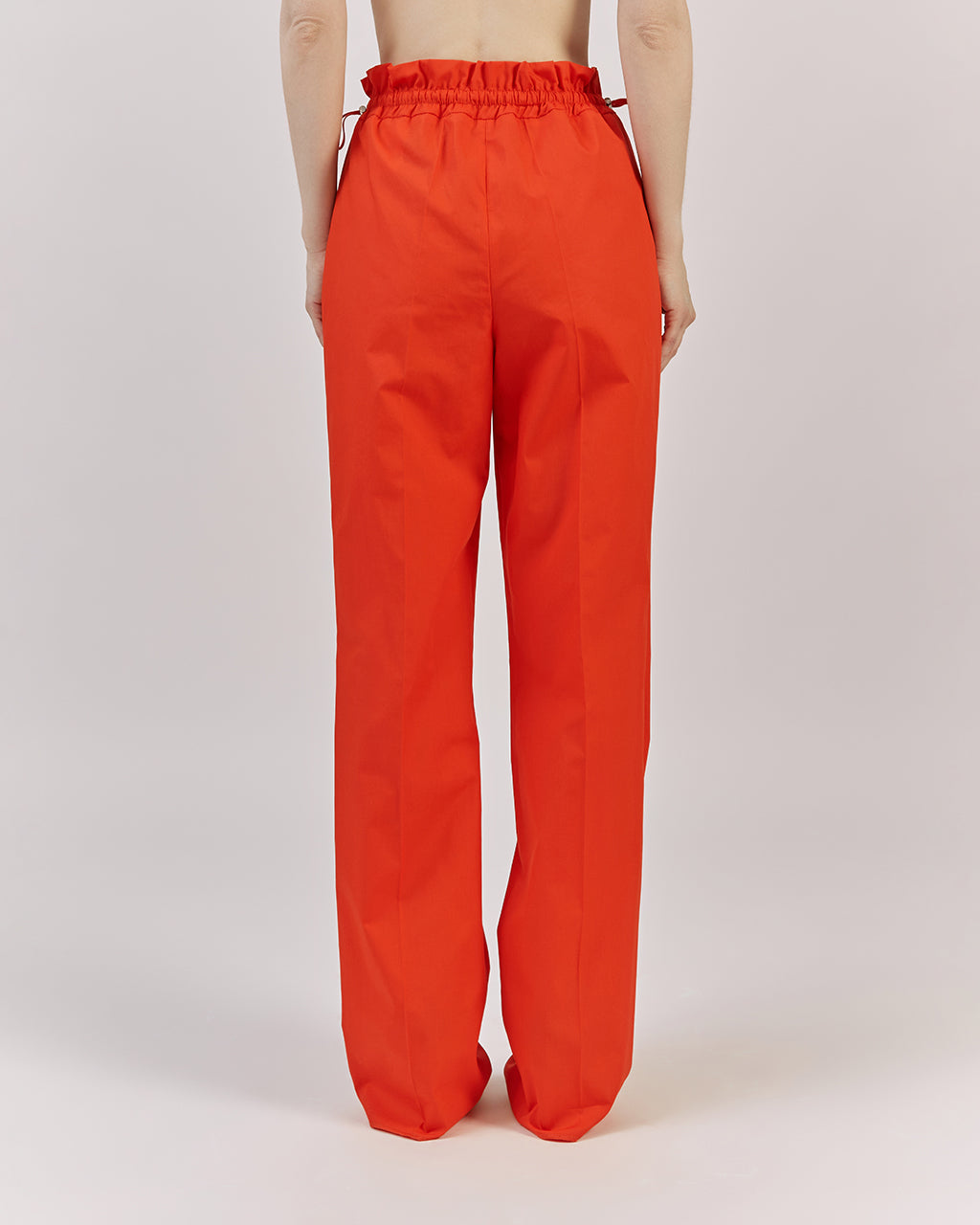 Taisnas bikses ar ielocēm  priekšpusē, piemērotas gan vakara, gan ikdienas tēliem. Patīkams kokvilnas bāzes audums ar pievienotām mākslīgajām šķiedrām labi saglabā formu un ir elpojošs . Elastīga un regulējama jostasvieta ar aukliņām ērtākai valkāšanai. Aizdare ar rāvējslēdzēju.