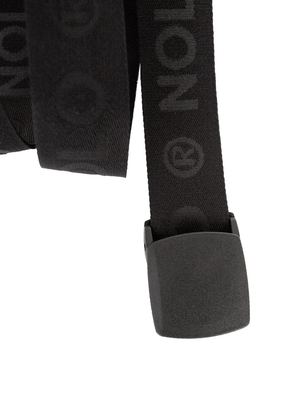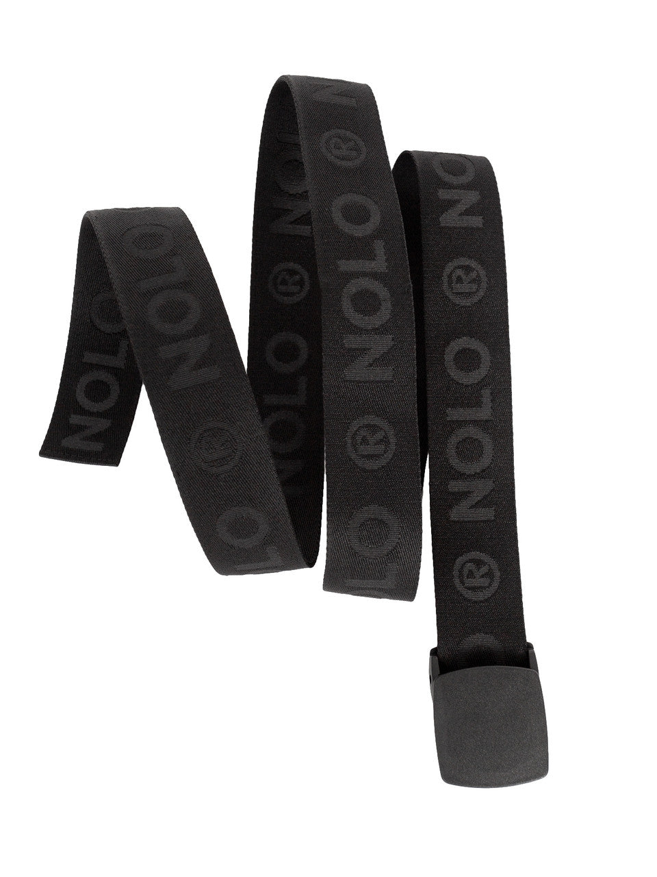 Black Nolo industrial belt with NOLO jacquard logos and black plastic buckle. Length: 165 cm, height: 4 cm. Material: 60% Polyamide 40% Polyester. Uni-size. Perfect with all Nolo dresses, cardigans and tops.