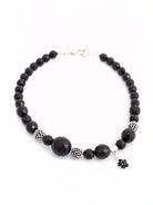 Black Czech Crystal Glass Beaded Necklace With Black Pavé Crystal Balls