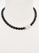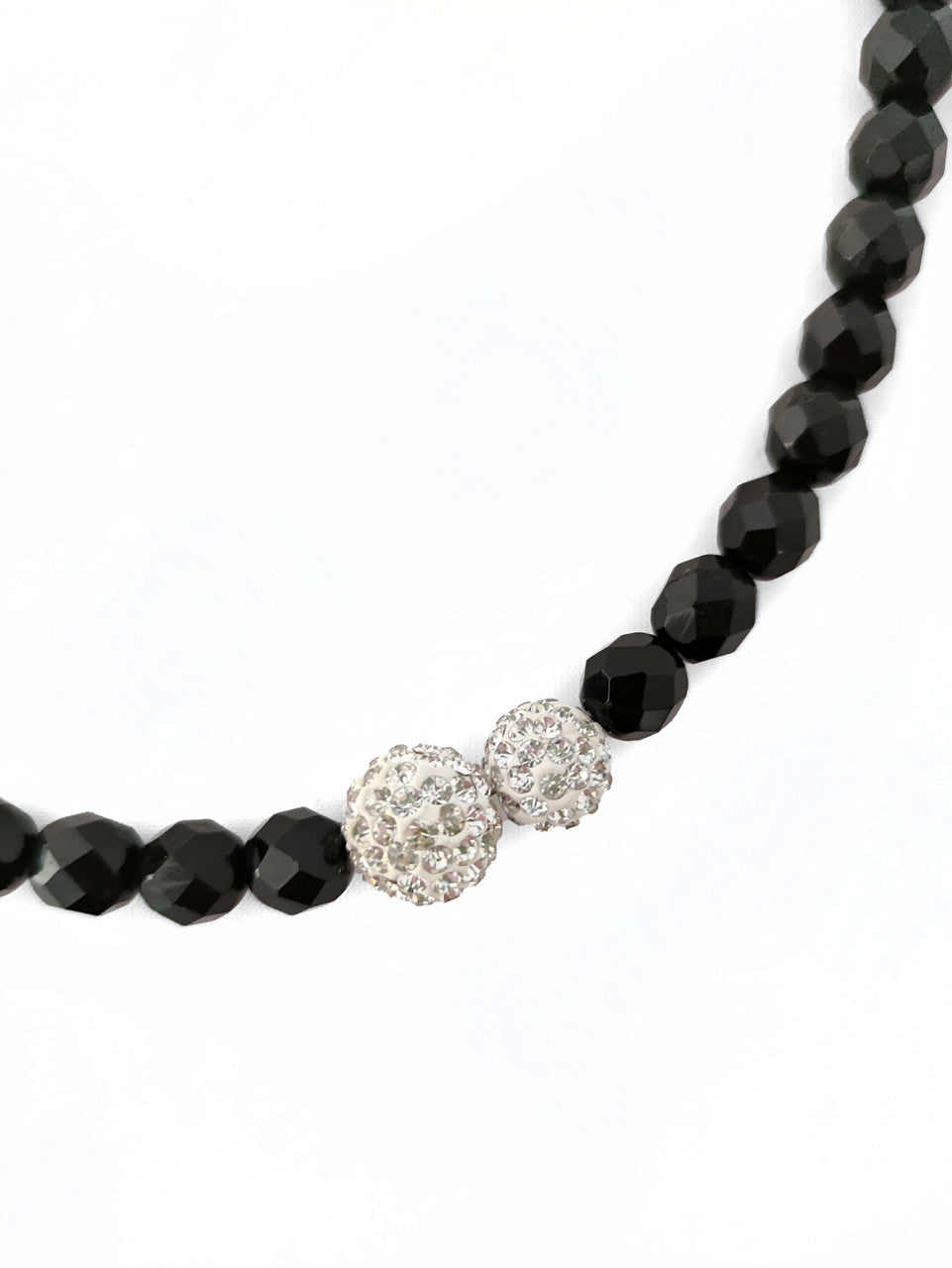 Black Czech Crystal Glass Beaded Necklace With White Swarovski Crystals