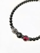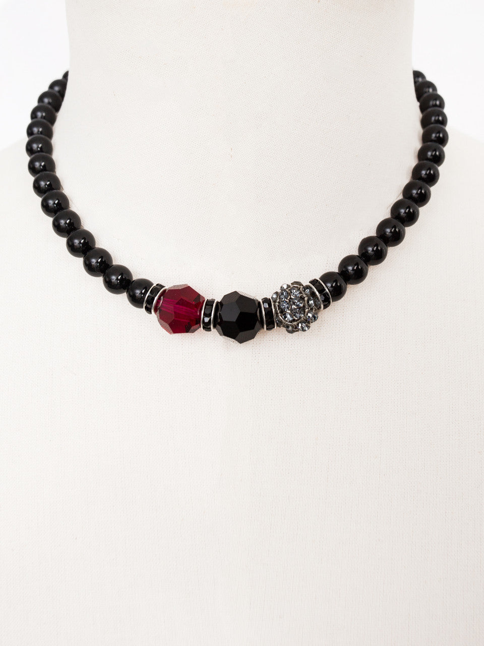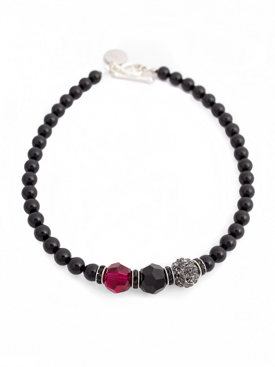 Black Swarovski Glass Beaded Necklace With Burgundy Crystal Bead