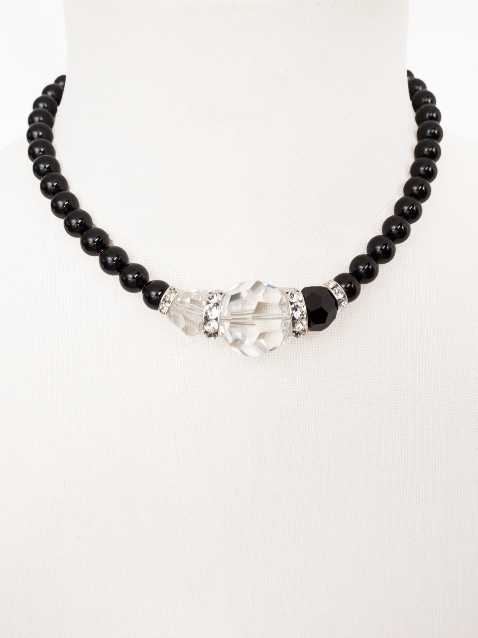 Black Swarovski Glass Beaded Necklace With Clear Crystal Beads
