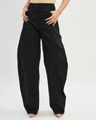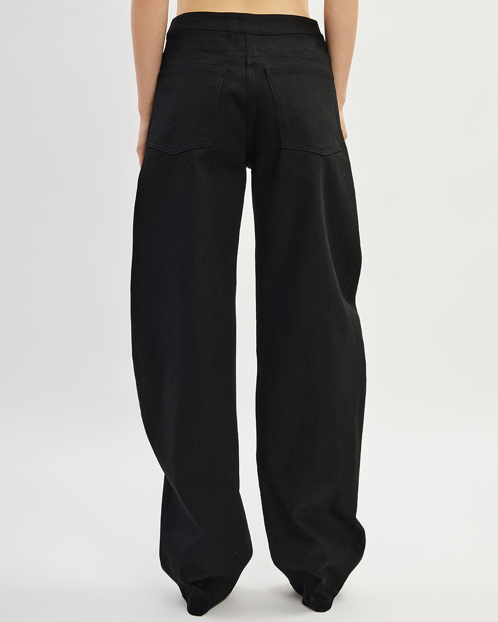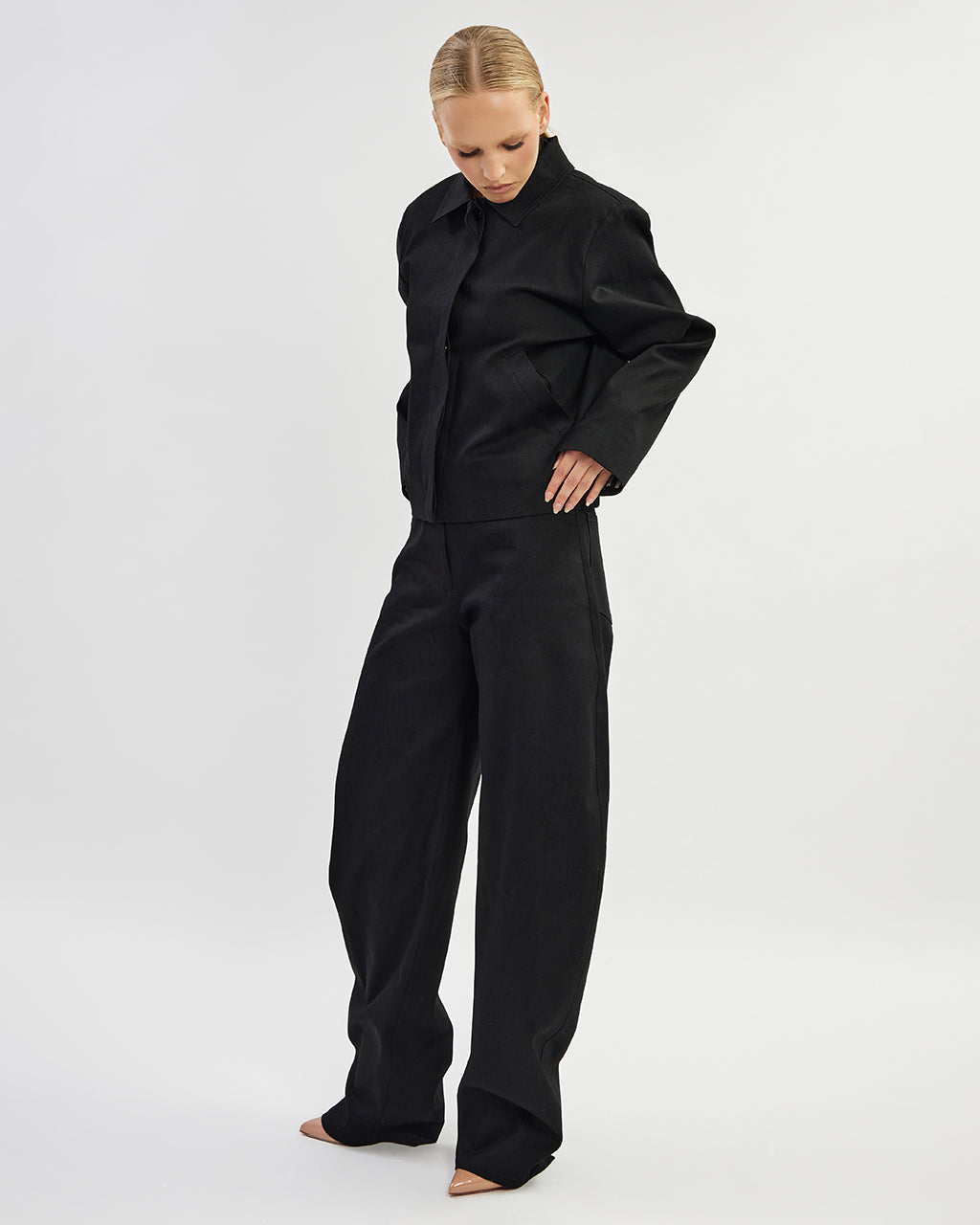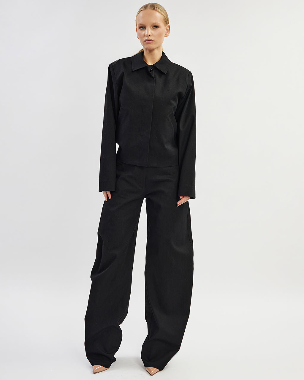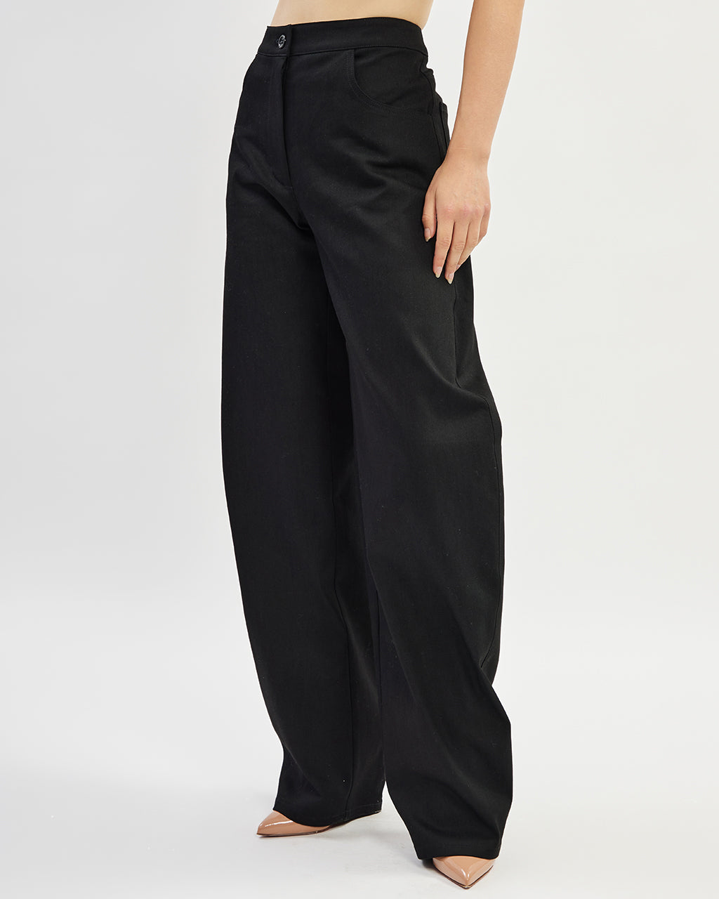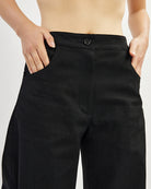 Wide fit trousers in sky black shade made with dense cotton fabric.